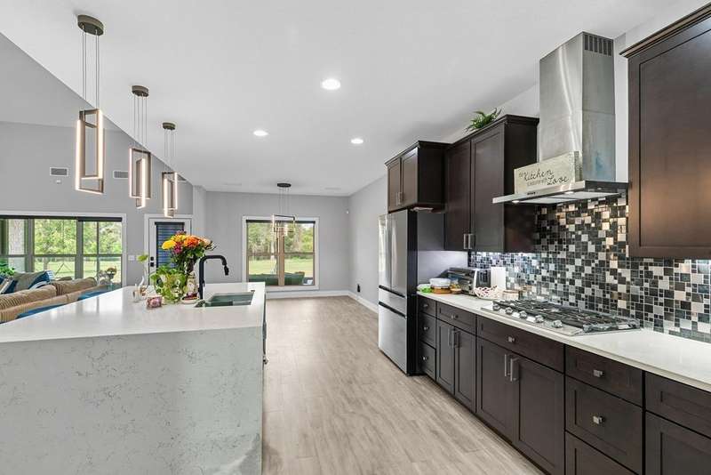 This beautiful home is perfectly situated with convenience to hospitals, Farley, Rucker, shopping, & some of the best restaurants in the area! Step inside to an open, bright, & modern floor plan designed with exquisite attention to detail & upgraded fixtures throughout. Nearly 3,600 square feet of living space includes 4 spacious bedrooms—two of which could serve as primary suites—& 3 large bathrooms. A massive upstairs bonus area offers endless possibilities: a homeschool room, man cave, ladies loft, movie theater, or anything you can dream up. The gourmet kitchen is a showstopper with a huge bar, gas stovetop, tons of storage, & a seamless flow into the family room, plus a separate dining room accented with a stunning feature wall. Throughout the home you'll find beautiful solid surface counters, fabulous stone fireplace, LVP flooring, energy-efficient AC, & a tankless water heater for modern comfort and efficiency. The exterior is just as impressive with low maintenance brick construction, gorgeous landscaping, & large porches. The back porch is especially inviting with plenty of room for your grill & multiple seating arrangements, all overlooking a serene backyard filled with mature trees & plenty of space for a future pool. Perfect for entertaining or enjoying peaceful everyday living, this home has room for everyone inside and out. Garage has electric car charging capability as well! Don't miss your chance to see- it is sure to capture your heart the moment you arrive!