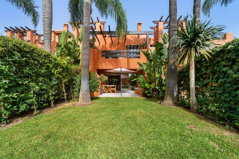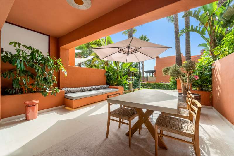 A Unique Opportunity in Marbella’s Prestigious Golden Mile An exceptional opportunity to acquire a fully renovated four-bedroom residence in the exclusive Altos de Puente Romano, one of the most sought-after enclaves of Marbella’s Golden Mile. With 217 m² of elegant interior living space and 134 m² of terraces, this property perfectly balances comfort, sophistication, and functionality. The open-plan main floor seamlessly connects a state-of-the-art kitchen with premium appliances to a spacious dining and living area, which opens directly onto a private garden and covered terrace. Natural light, clean lines, and contemporary finishes define every corner, creating a refined yet practical home. The upper levels feature generously sized bedrooms, including a luxurious master suite with a walk-in wardrobe and a beautifully designed bathroom. Multiple terraces provide versatile outdoor living spaces ideal for dining, relaxing, and entertaining — crowned by a rooftop solarium complete wit