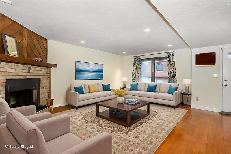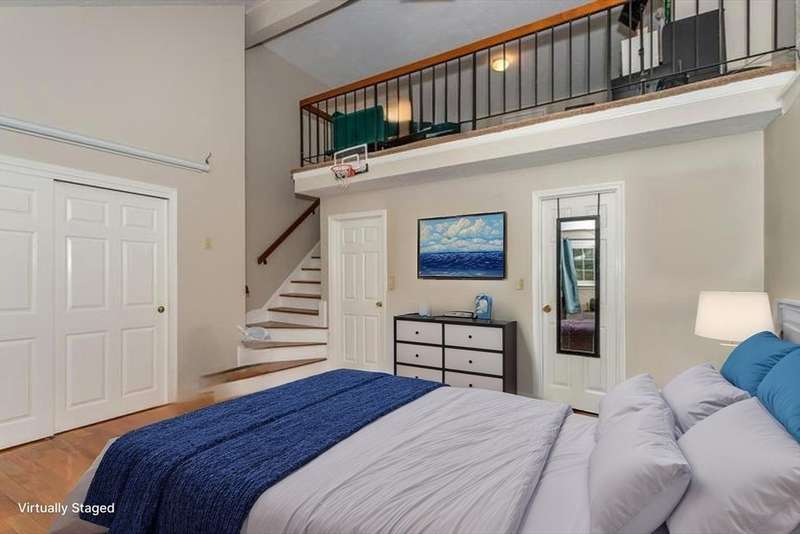 Beautiful Waterview Condo! This spacious multi-level home offers three levels of living and a private balcony overlooking tranquil Sheppard s Pond perfect for morning coffee or evening relaxation. The main level boasts a large fireplaced living room with stunning pond views, a dining area, kitchen, and a convenient half bath. Upstairs, enjoy in-unit laundry, two spacious bedrooms, and two full baths, including a private primary suite with serene water views, en-suite bath, and direct access to a versatile loft ideal for a home office, gym, or guest space. Minutes to Cobbs Corner, highways, and commuter rail, this home combines comfort, convenience, and natural beauty.