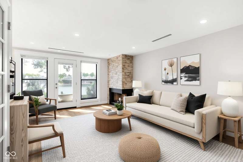Here's the one you've been waiting for! A maintenance free condo offering a comfortable lifestyle with relaxing pond views in desirable Sandpiper Bay. Conveniently located on the NW side of Indianapolis with easy access to 465. This well maintained and updated unit includes 2 bedrooms, 1.5 baths, a wood burning fireplace, newer hardwood floors upstairs and LVP flooring on the main level with fresh paint throughout. All appliances included. Don't wait to view this great condo and opportunity!