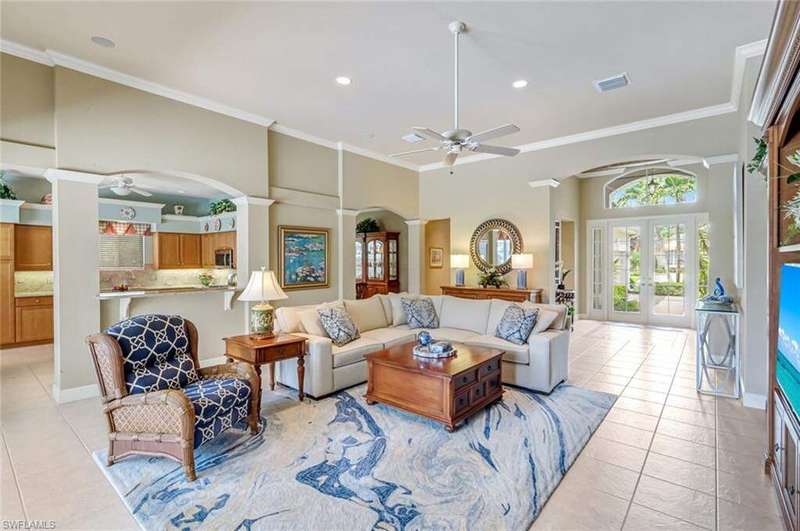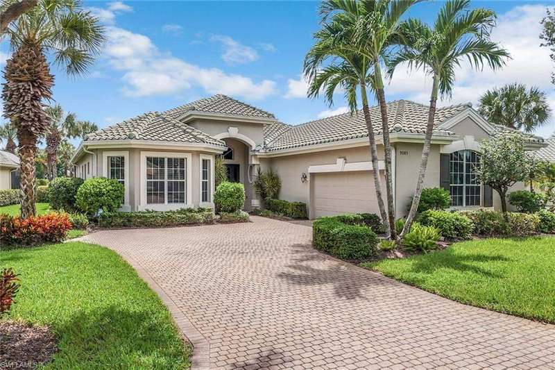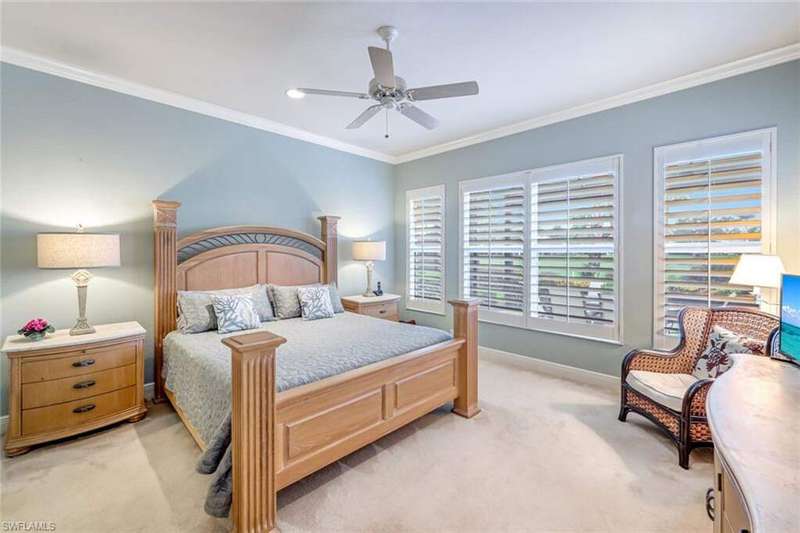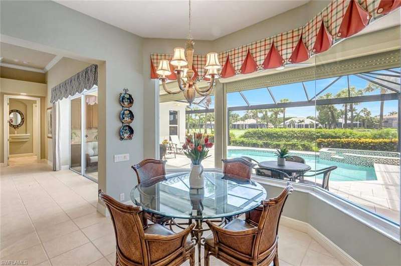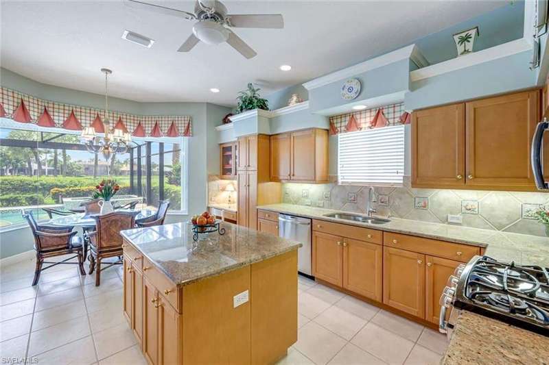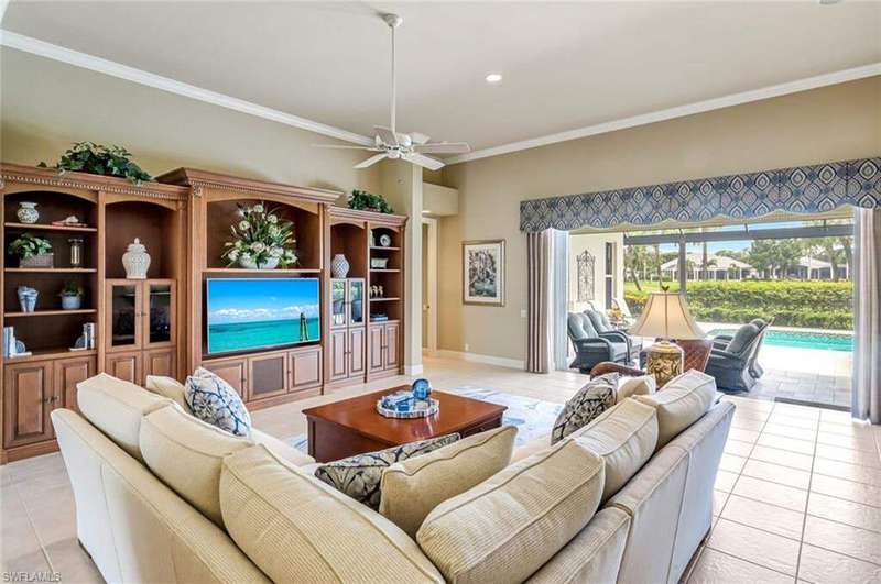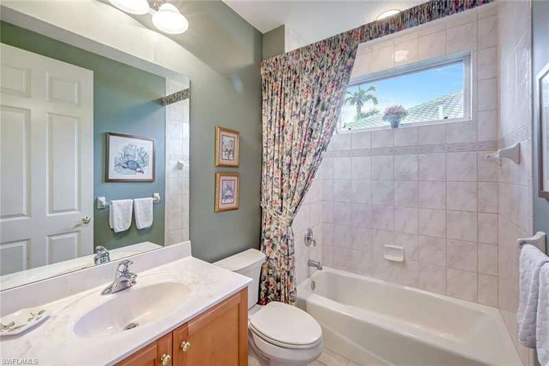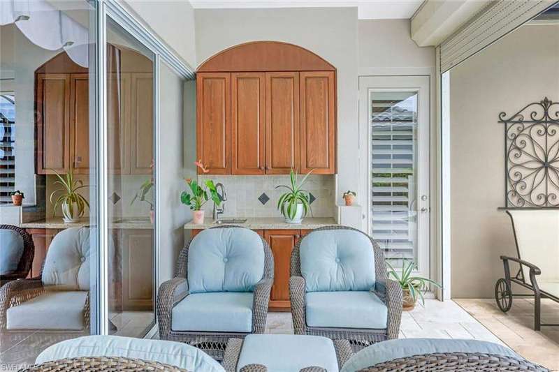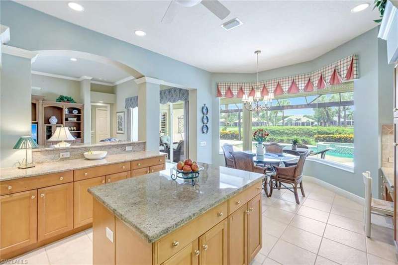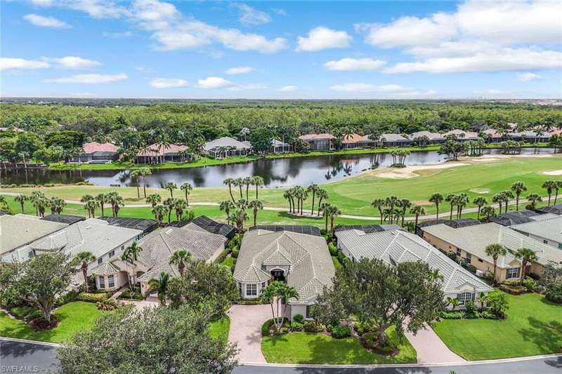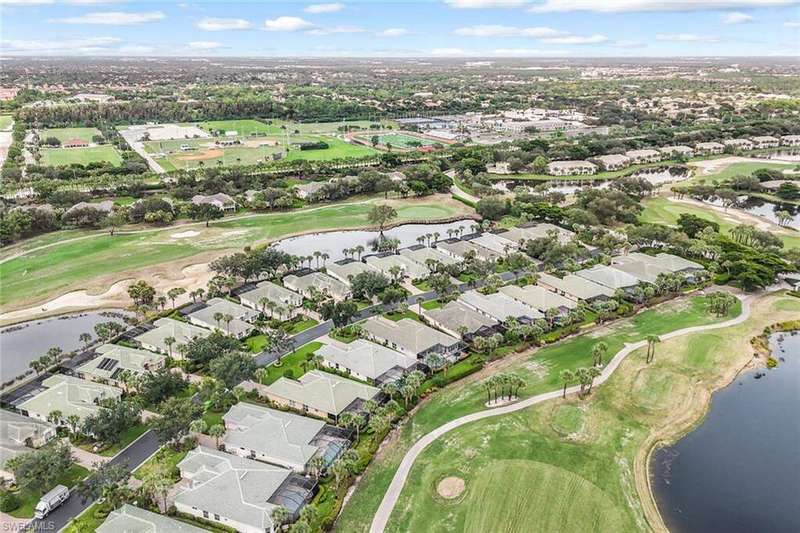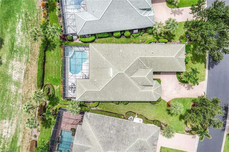 Rarely available and highly sought-after, this Bardmoor II floor plan is offered with an OPTIONAL FULL-GOLF MEMBERSHIP and features 3 bedrooms plus a den, 2.5 baths, an oversized 2.5-car garage 20 x 29, and an additional 6 X 10 FOOT AIR CONDITIONED STORAGE ROOM in garage ideal for crafts or extra storage and a 2020 NEW ROOF. Southern exposure enhances the beautifully renovated pool, spa and natural stone decking that expands the width of the home with the extended picture-screened lanai spanning the full width of the home and providing seamless lake and golf course views and 2023 pool heater. The NEW lanai also features electric storm hurricane protection, allowing for a convenient lock-and-go lifestyle. The open great room floor plan showcases volume ceilings, abundant natural light, and a custom craftsman-style entertainment center. The fantastic kitchen is perfect for entertaining family and friends, complete with a morning room breakfast area overlooking the pool, natural gas cooking. The den includes an impressive built-in with generous storage and workspace. The primary suite offers 2 walk-in closets, along with a spacious bath featuring a soaking tub and walk-in shower. Additional highlights include tile flooring throughout the main living areas and a utility room with sink. Ideally located near shopping, the airport, and Naples' beautiful beaches, this home is offered with an optional full golf membership. Shadow Wood offers optional Club Memberships with 3 / 18 Hole Championship Golf Course, 9 Har-Tru Clay Tennis Courts, 3 Bocce Ball Courts and beautifully landscaped community for walking and biking. COMING SOON to Shadow Wood- RESORT POOL, DEDICATED KIDS POOL, POOLSIDE DINING AND BEVERAGE SERVICE AND 6 INDOOR PICKLEBALL COURTS. The Commons Club Membership offers Beach access, Private Beach Club and Pavilion, Attended Fitness center with classes and on-site fitness trainers, Pickleball, Social activities and private restaurant on-site, Playground, Lap-pool and Spa, Massage and Spa Services by appointment. Come Live Your Best Life in Shadow Wood.
