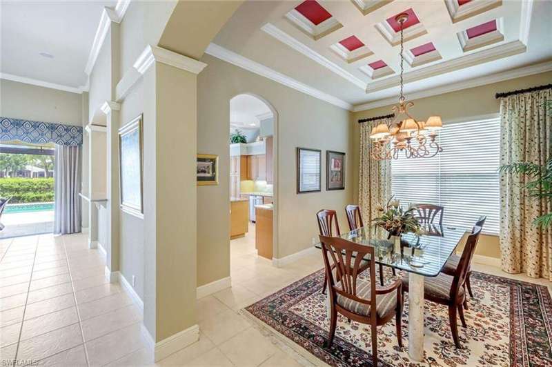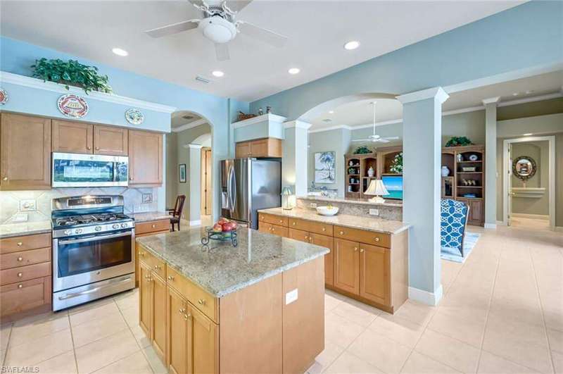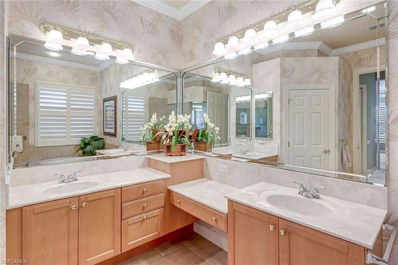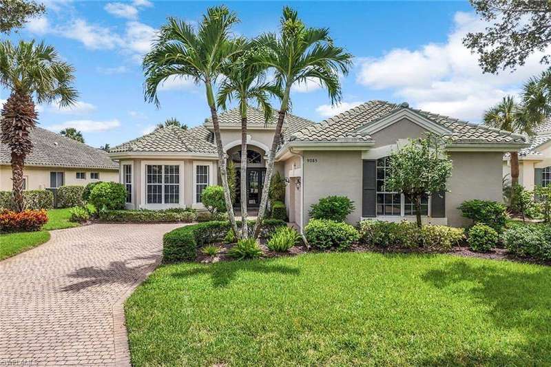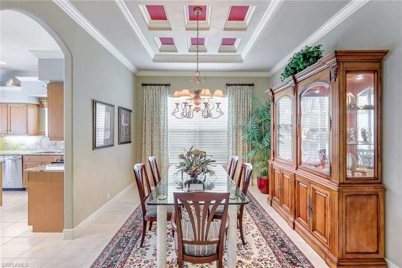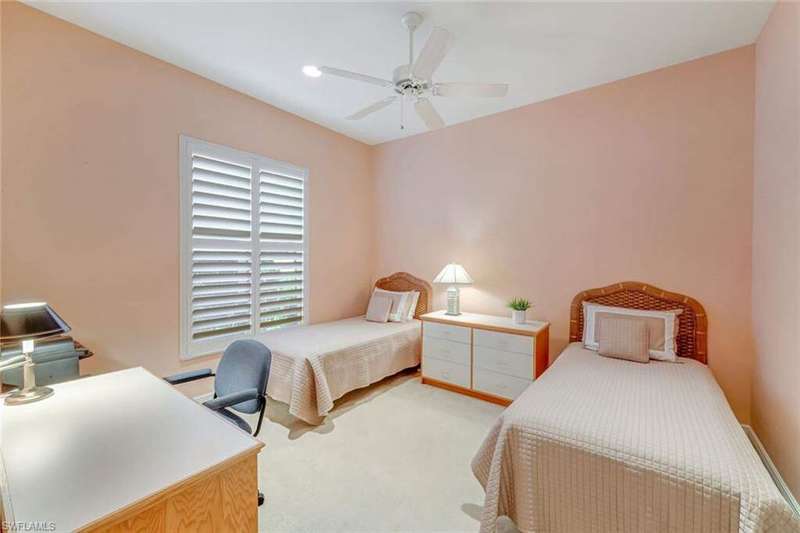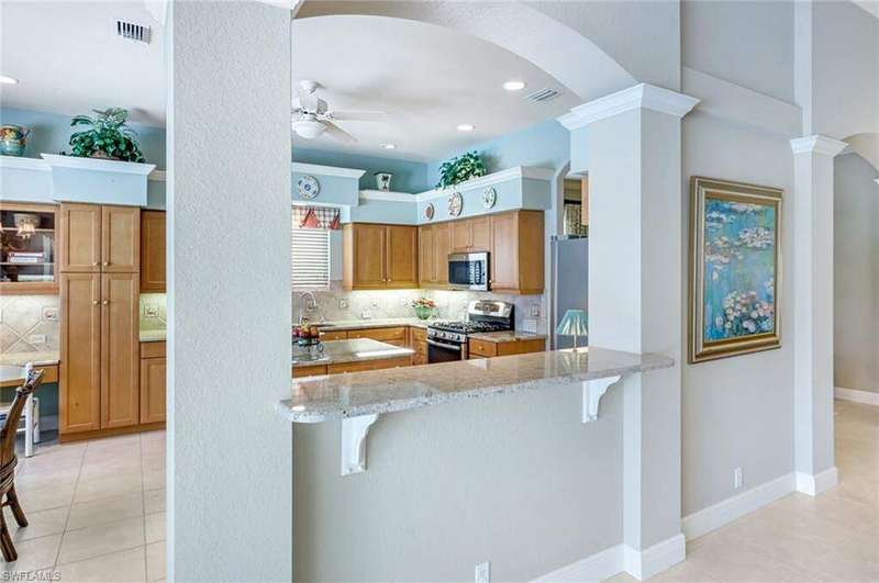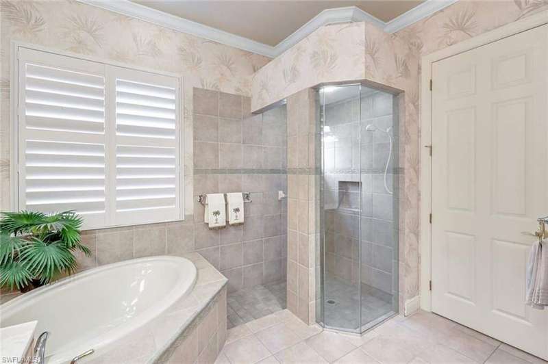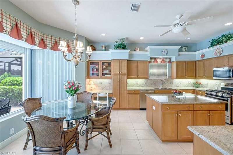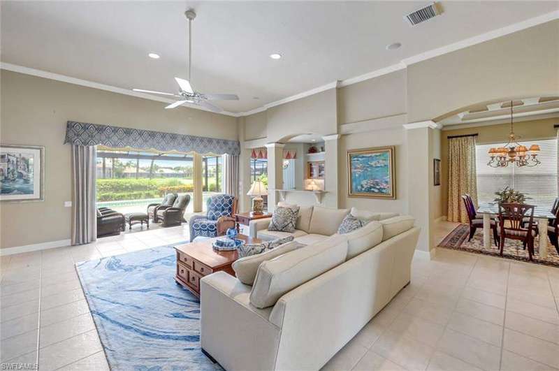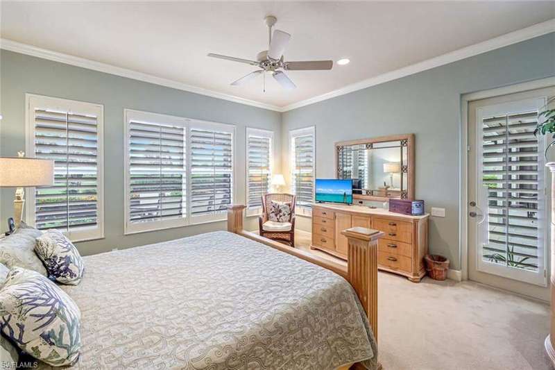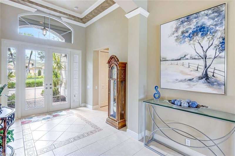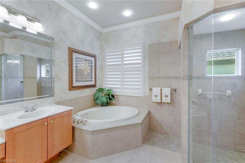 Rarely available and highly sought-after, this Bardmoor II floor plan is offered with an OPTIONAL FULL-GOLF MEMBERSHIP and features 3 bedrooms plus a den, 2.5 baths, an oversized 2.5-car garage 20 x 29, and an additional 6 X 10 FOOT AIR CONDITIONED STORAGE ROOM in garage ideal for crafts or extra storage and a 2020 NEW ROOF. Southern exposure enhances the beautifully renovated pool, spa and natural stone decking that expands the width of the home with the extended picture-screened lanai spanning the full width of the home and providing seamless lake and golf course views and 2023 pool heater. The NEW lanai also features electric storm hurricane protection, allowing for a convenient lock-and-go lifestyle. The open great room floor plan showcases volume ceilings, abundant natural light, and a custom craftsman-style entertainment center. The fantastic kitchen is perfect for entertaining family and friends, complete with a morning room breakfast area overlooking the pool, natural gas cooking. The den includes an impressive built-in with generous storage and workspace. The primary suite offers 2 walk-in closets, along with a spacious bath featuring a soaking tub and walk-in shower. Additional highlights include tile flooring throughout the main living areas and a utility room with sink. Ideally located near shopping, the airport, and Naples' beautiful beaches, this home is offered with an optional full golf membership. Shadow Wood offers optional Club Memberships with 3 / 18 Hole Championship Golf Course, 9 Har-Tru Clay Tennis Courts, 3 Bocce Ball Courts and beautifully landscaped community for walking and biking. COMING SOON to Shadow Wood- RESORT POOL, DEDICATED KIDS POOL, POOLSIDE DINING AND BEVERAGE SERVICE AND 6 INDOOR PICKLEBALL COURTS. The Commons Club Membership offers Beach access, Private Beach Club and Pavilion, Attended Fitness center with classes and on-site fitness trainers, Pickleball, Social activities and private restaurant on-site, Playground, Lap-pool and Spa, Massage and Spa Services by appointment. Come Live Your Best Life in Shadow Wood.