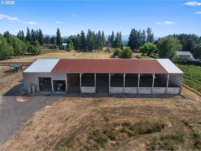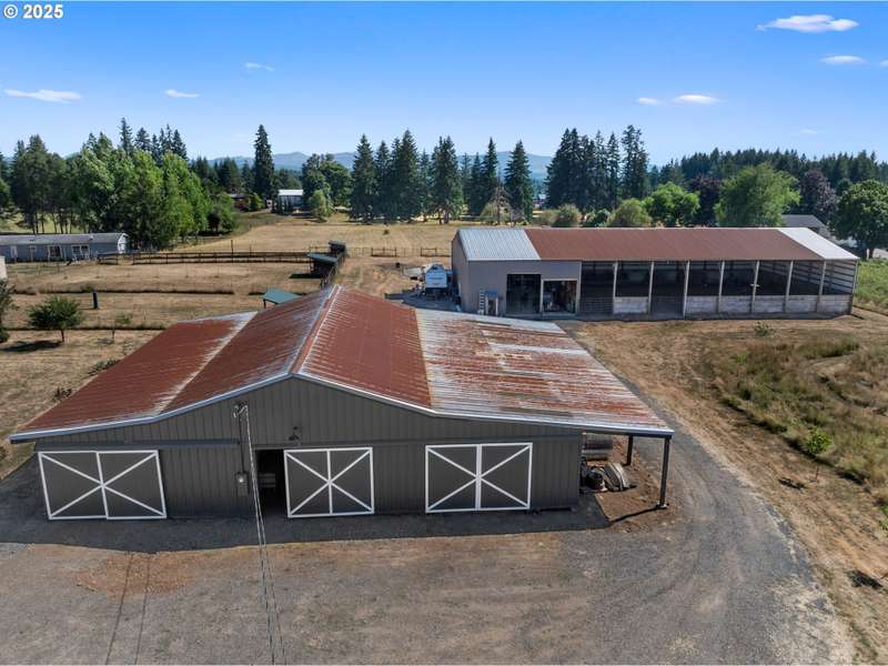 3,736 square ft home on nearly 10 level, usable acres. Beautifully updated with quality finishes, remodeled bathrooms, a main-level primary suite, spacious living room, office/den, and a granite kitchen with island and stainless appliances. Newer metal roof, fiber cement siding, water filtration system, generator hookup, and AC-ready.Attached 1,000+ sq ft apartment with loft, private entrance, separate meter, and fenced yard—perfect for multigenerational living or rental opportunity.Equestrian-ready with a 60x60 barn featuring 7 stalls, birthing stall, tack room, loft, and 60x12 lean-to. Ride year-round in the 90x60 covered arena with 16’ eaves and sand-fiber footing.Spacious 60x36 shop with 14’ & 12’ doors, 200-amp service, half bath, and full RV hookup.Five fenced pastures (three with water), fruit trees, and wide open space offer peaceful country living—just 10 minutes to Sandy and about 40 minutes to Mt. Hood activities!A perfect blend of comfort, functionality, and rural charm.