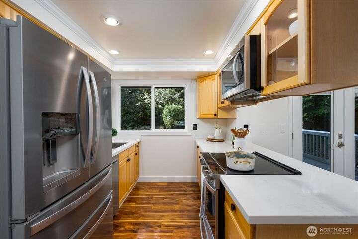 Tucked in the desirable Highlands neighborhood of Kirkland, this beautifully maintained home has been lovingly cared for by the same owners for over 27 years, and it shows. The moment you step inside, you're greeted with warm engineered hardwood floors and new cozy carpet in the bedrooms for those weekend sleep-ins. The updated kitchen and bathrooms feature modern finishes and timeless style. Out back? It's not just a yard—it’s your future social HQ. Multiple freshly refinished decks set the stage for epic summer BBQs or quiet morning coffee moments. Location-wise, you’re near local favorites like Peter Kirk Pool, the public library, and lush parks, making it easy to see why Kirkland is one of the Eastside’s most beloved communities.