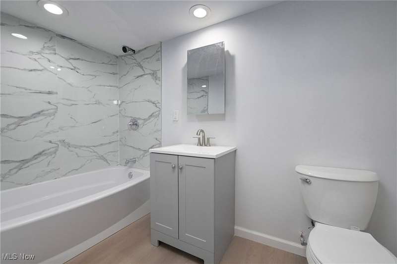 Located in the heart of desirable Strongsville, this 3 bed 2 bath bungalow is ready for a new owner! Entering through the sizable family room you're greeted with freshly refinished hardwood floors and a brick wood burning fireplace. The kitchen offers refinished cabinetry, granite counters and a new stainless-steel appliance package with gas stove. A tiled modern full bath with floating vanity and lighted mirror services the 2 first floor bedrooms. Fresh paint, new trim and interior doors are also found throughout the home. Moving upstairs the large primary bedroom includes a new en-suite bath with modern finishes and LVL flooring. Heading to the partially finished basement you will find a large, finished bonus room perfect for large gatherings. A laundry area and additional storage rooms complete the space. Additional improvements to the home are as follows: Permitted replacement of 75 feet of basement wall and complete basement waterproofing. New plumbing throughout home. New SOAR (Sewer line and Riser). New energy efficient windows and accessible insulation areas, New HVAC, New 200amp electric panel and New front deck! Schedule your showing today!!