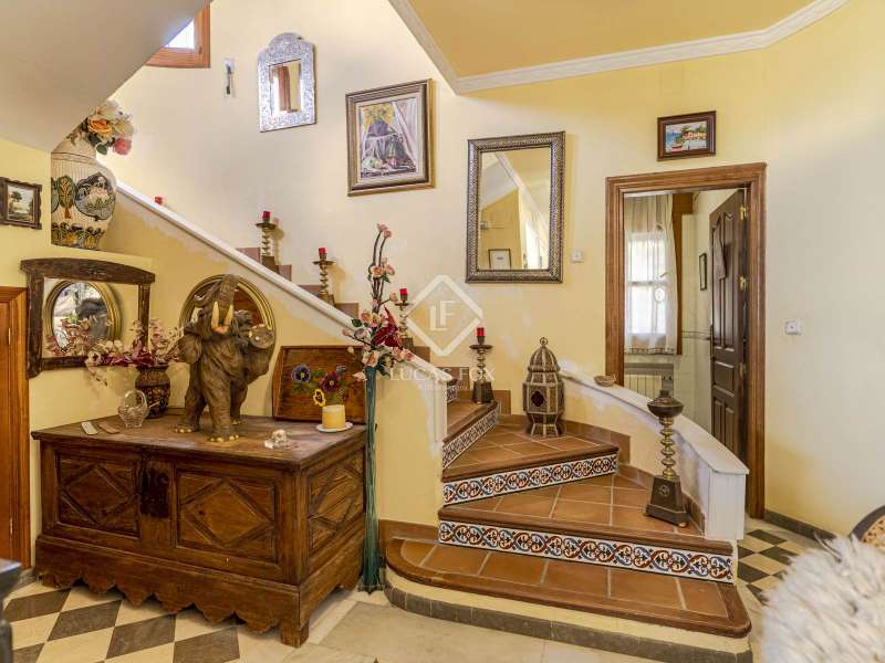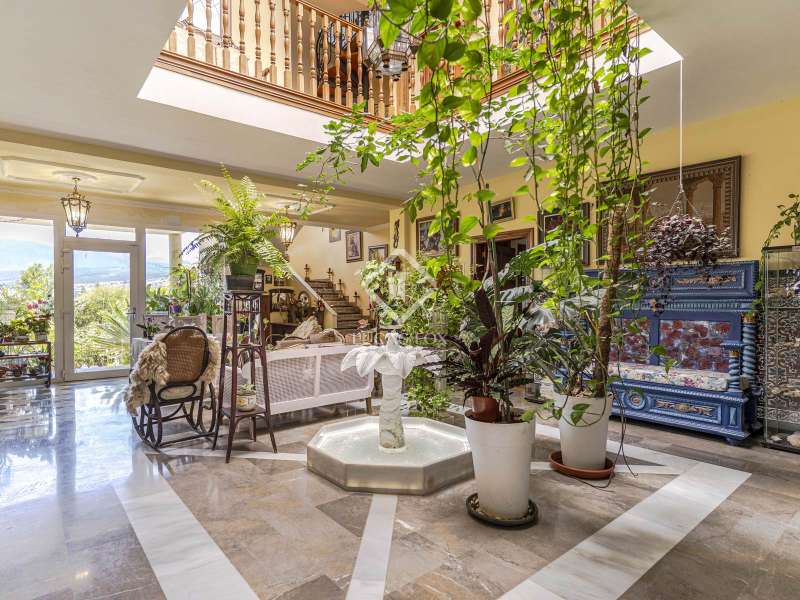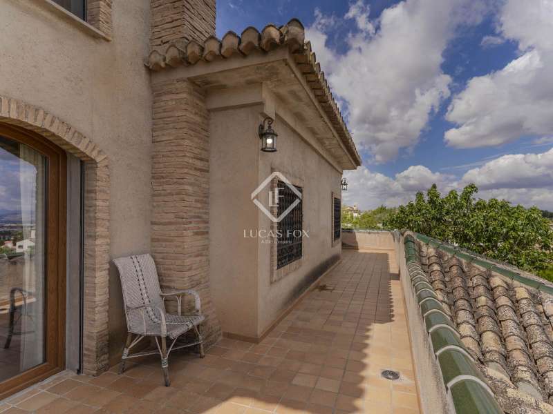 Lucas Fox exclusively presents this comfortable Andalusian-style stately villa in one of Granada's most coveted locations, Ogijares. The property has 800 m² of built area on a majestic plot of over 2,000 m², offering a natural and private setting. Exterior, the property is surrounded by mature gardens, private orchards, fruit trees, and a large, recently renovated pool, ideal for enjoying the outdoors in complete privacy. From the entrance, the central Andalusian courtyard, flooded with natural light, leads into the interior. On the main floor , there is a spacious living-dining room, dominated by a traditional fireplace . The separate kitchen also access onto the terrace. On this same floor, a bedroom with a dressing room and private bathroom , as well as a guest bathroom , complete the floor. On the upper floor , we find the night area with four generously sized bedrooms, two of them with their own bathroom and access to a private terrace with panoramic views of Granada and the Sierra Nevada. The turret floor offers a versatile, elevated space, ideal as an additional bedroom , study , or reading room, with spectacular views in all directions. The large basement features a garage for several vehicles, a wine cellar, a technical room, and spacious areas that can be adapted to your needs. In terms of quality, the villa has central heating, solar panels for hot water and electricity, and is in excellent condition throughout. A historic property offering comfort and exclusivity in a peaceful setting yet connected to everything.