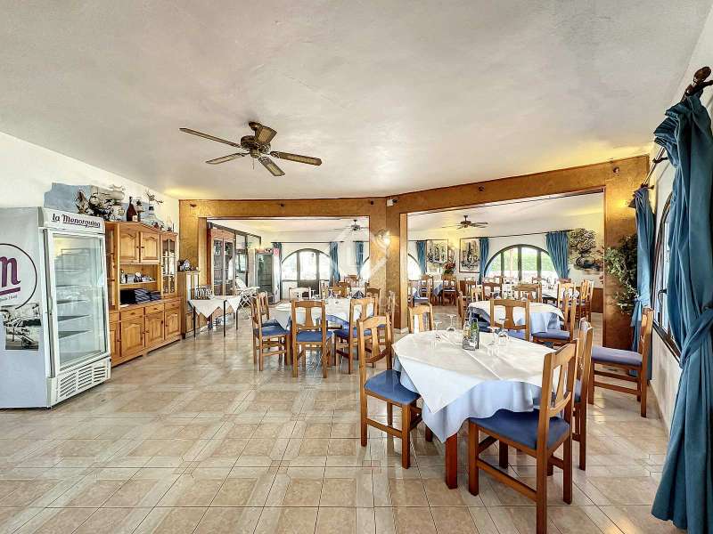 Lucas Fox presents for sale a famous traditional Menorcan restaurant with family-friendly cuisine located in the Cala'n Porter development , in the municipality of Alaior. We find an active business that works all year round with regular clients during the winter and tourists during the summer season. The restaurant's great attraction in summer is the gigantic pool with its enormous terrace with green spaces with free access for all customers. The pool area has a barbecue, tents, sun loungers, table football, showers and changing rooms. From the pool, you can directly access the restaurant, which consists of three large separate rooms with capacity for 110 guests and two bathrooms. The bar counter is located right in the middle of the three rooms, so that it is easily access to waiters and customers. The interior is very bright and has good ventilation, thanks to the large arch-shaped windows that we can find along the entire façade. As one of the rooms has a large fireplace, in winter it is ideal for hosting family gatherings or board game tournaments. The kitchen is spacious and perfectly equipped, with a cold room and two storage rooms. It also has a large covered terrace along the entire perimeter of the sidewalk, ideal for having a drink during the summer in the sun where up to 97 seats can be occupied for lunch and dinner. You can also celebrate events such as weddings, birthdays or concerts, since loud music is allowed until 12:00 at night, so it is also a great attraction for tourists. From the back of the restaurant, we can access the attached private villa with garden and garage. The property from the 70s currently maintains the same period style and recalls the design of the same restaurant. Here we find a small porch that leads to a large living-dining room with a closed terrace transformed into a chill-out area. It is a very pleasant room due to its luminosity and its south orientation that allows it to receive light throughout the day. Returning to the hallway we can see the fully equipped kitchen in good condition, with a utility room area and access to the garage. On this floor we also find three double bedrooms, a full bathroom and a toilet. The garden is spacious and has the possibility of growing the vegetable garden for bar customers or for your own use. Without a doubt, an investment opportunity to settle comfortably in Menorca, having property adjacent to the business and leisure area. Contact us for more information or to arrange a visit.