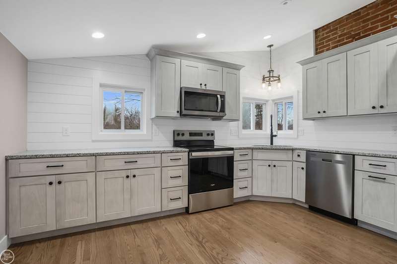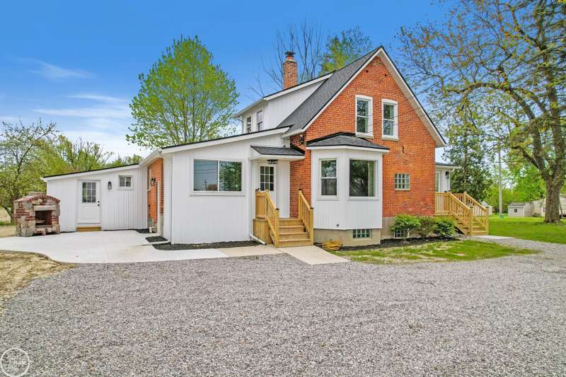 Ask how you can qualify for a 5.75% interest rate on this house! Country Paradise at a lower monthly payment. Escape to your own private retreat with 6+ acres of serene, wooded beauty--perfect for outdoor living, recreation, and year-round adventure. This beautifully updated split-level home blends farmhouse charm with modern finishes, offering comfort, style, and space for every need. Main Floor Comfort & Style. Step into a bright, welcoming foyer with refinished hardwood floors flowing through most of the main level. The brand-new kitchen features soft-close shaker cabinets with 42" uppers and crown molding, granite countertops, stainless steel appliances, and recessed lighting. A flexible room off the kitchen can serve as a formal dining area, home office, or playroom. Convenient first-floor laundry and a fully updated half bath add to the functionality. Private Owner's Suite The spacious primary bedroom offers a large walk-in closet, recessed lighting, ceiling fan, and a stunning new ensuite bath with a dual-sink granite vanity, relaxing clawfoot tub, and tiled shower with surround. Upstairs Retreat.; The second level features two generous bedrooms, a loft with new carpet, and a newly updated full bath with a dual-sink vanity, granite counter, and subway-tile shower with stone floor. Indoor-Outdoor Living. Enjoy the great room's abundant natural light, bay window, and open layout, or step outside to your new cement patio with outdoor fireplace--perfect for summer evenings under the stars. Extra Buildings for Work & Play. A large barn provides ample workshop space plus a finished bonus room for a home office, hobby space, or guest accommodations. Additional outbuildings are ready to store your outdoor gear, vehicles, or recreational toys. Move-in ready and set for your next adventure--welcome home to the best of country living. Other brand-new updates include: roof, roof sheathing, insulation, furnace and A/C, water heater, septic tank and field, updated electrical, updated plumbing, most windows replaced, vinyl siding, front and side entry stairs and decks. Large circular drive with new limestone.