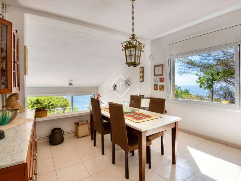 Villa Mirador is located in Sant Elm and has spectacular views of the sea and the port of Sant Feliu de Guíxols. It is located just 300 meters from the beach, in the town of Sant Feliu de Guíxols, known for its water activities and its markets, shops, restaurants and historic centre . This property was built in 1990 on a 1,100 m² plot and is divided into three floors. It is accessed through a entrance hall that leads to the fully equipped kitchen and a living-dining room with a fireplace and large windows with access to a large terrace. From the living room, we can enjoy spectacular views of the Mediterranean Sea. Additionally, on this floor we have a living-dining room and a summer kitchen, perfect for large family gatherings. On the upper floor , we find the night area composed of four double bedrooms, two bathrooms and a guest toilet. The floor also connects with a large terrace that allows you to enjoy its panoramic views. We go down to the lower floor to access the very sunny pool with its automatic cleaning system. The property is equipped with radiator heating, double-glazed windows and a garage that can fit two cars. It enjoys a special location in Sant Elm, near the viewpoint known for its 18th century hermitage, a historic setting on the Costa Brava. Do not hesitate to contact us for more information or to schedule a visit.
