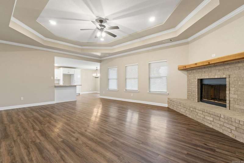 Brand New Home on a .96 acre lot! You'll love the open floor plan! **NO CARPET DOWNSTAIRS** Kitchen features custom cabinetry, full pantry, slab granite, and high quality stainless appliances. Great room has tray ceiling, wood burning fireplace and LVT flooring. **Wood blinds throughout**. The primary bedroom has a tray ceiling, jetted tub, separate shower and two closets with built ins (one is enormous). Very large covered back porch! 4th bdrm is upstairs and could also make a great game room! Laundry is large and has a sink. The garage is 32' wide with one side 24' deep, which is long enough for extended cab truck, fishing boat or utility trailer. The other side is 20 deep. Come check out this great home! Completely finished and ready for a new family.
