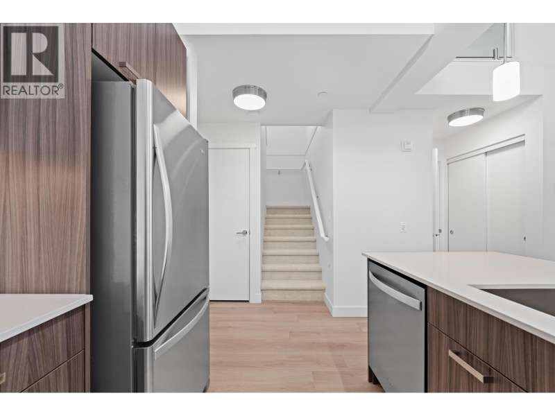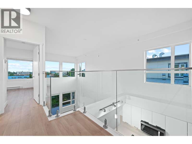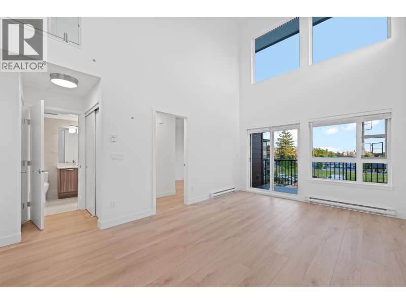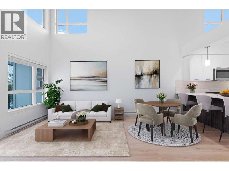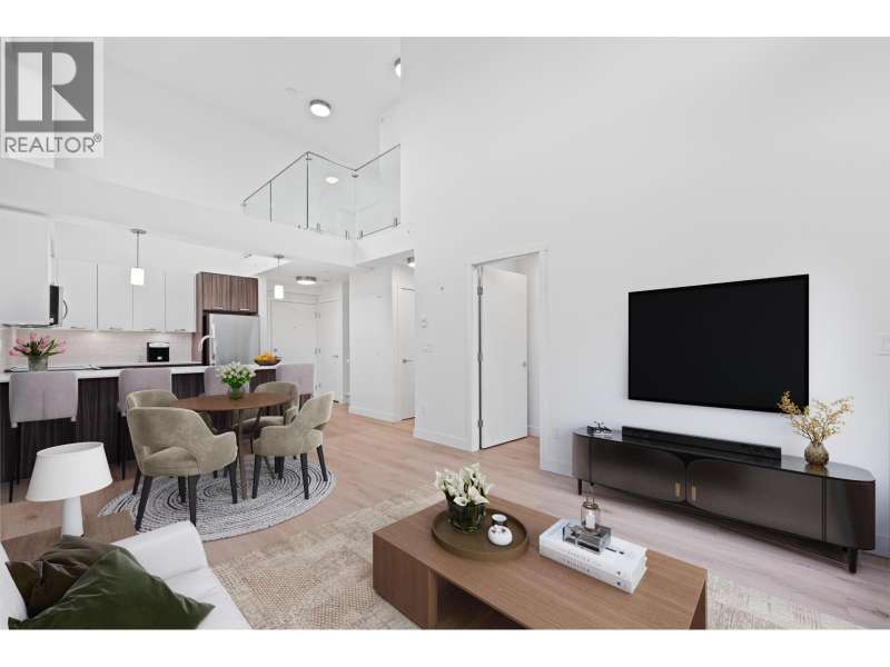 Elevated Loft Living - Now, a true 2 Bedroom at Edge 2. Renovated two-level loft-style penthouse in a substantially rebuilt building, located in the heart of Maple Ridge just steps to shops, dining, and transit. Unlike typical lofts, the upper-level bedroom is fully enclosed for true privacy, making this a functional 2-bedroom home. Soaring 18 ft ceilings and expansive windows flood the space with natural light. The modern kitchen features quartz countertops, soft-close cabinetry, and stainless steel appliances. The main level includes a spacious bedroom with walk-in closet and cheater en-suite. Laminate flooring throughout, custom shelving in upped bedroom closet. 1 parking and storage included. Pets and rentals welcome. (id:58403)