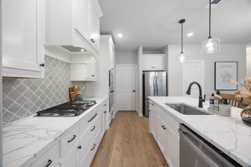 Welcome to this inviting retreat nestled in the heart of Rockwalls premier 55+ active adult community, Ladera! This almost new home is in pristine condition and offers a lock-and-leave lifestyle, allowing you to embrace leisure and adventure without the hassle of yard maintenance. Step inside to discover blonde LVP flooring, quartz kitchen counters, a 5-burner gas cooktop, premium lighting in the kitchen and dining areas, and laundry conveniently located off the primary bath. Every detail of this home reflects comfort, quality, and modern design. Enjoy resort-style amenities including a sparkling pool, pickleball courts, and The Hub community centerperfect for socializing and staying active. With the added security of a gated entrance, peace of mind comes standard. Ideally located just a short drive to beautiful Lake Ray Hubbard and minutes from shopping, dining, and entertainment, this home is part of Rockwallranked one of Money Magazines Top 5 Best Places to Live in America. Experience the relaxed, carefree lifestyle where every day feels like a vacationat Ladera, Rockwalls premier 55+ active adult community.