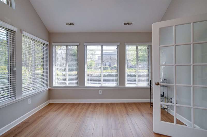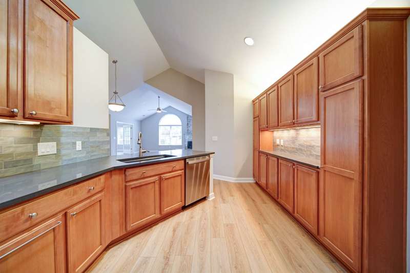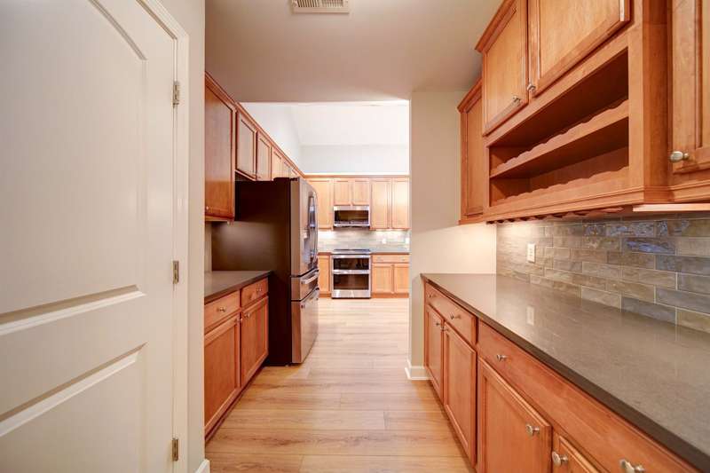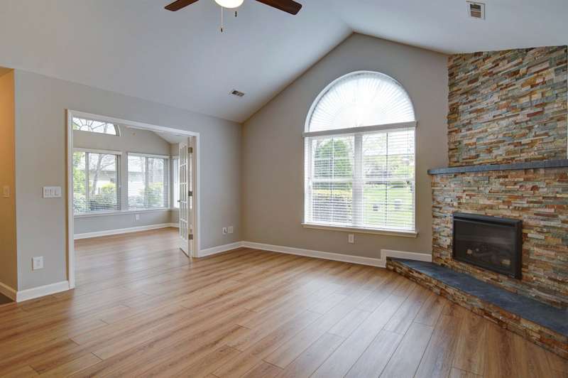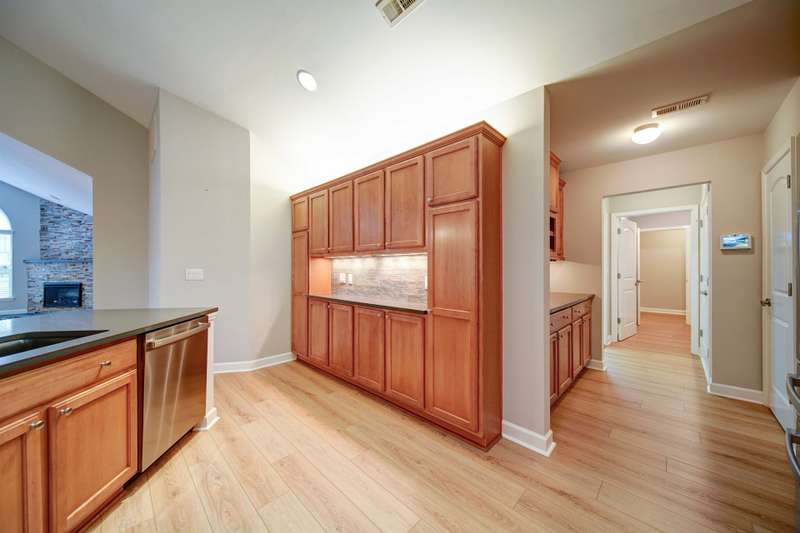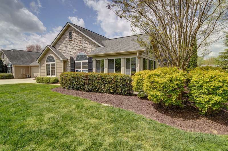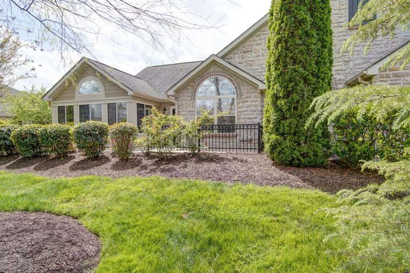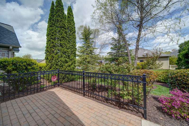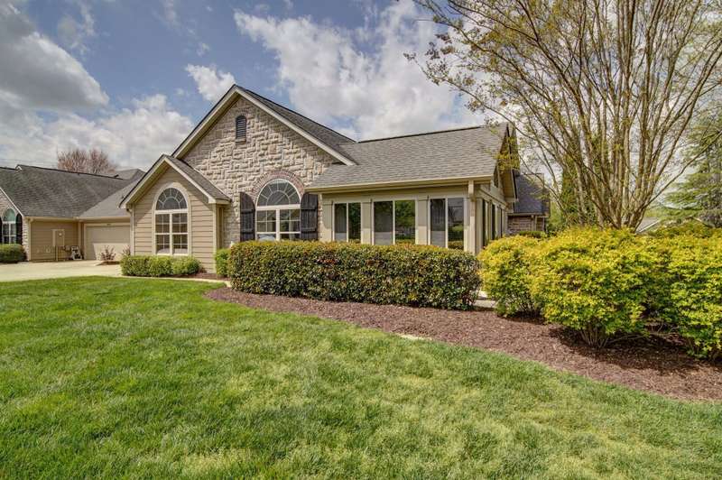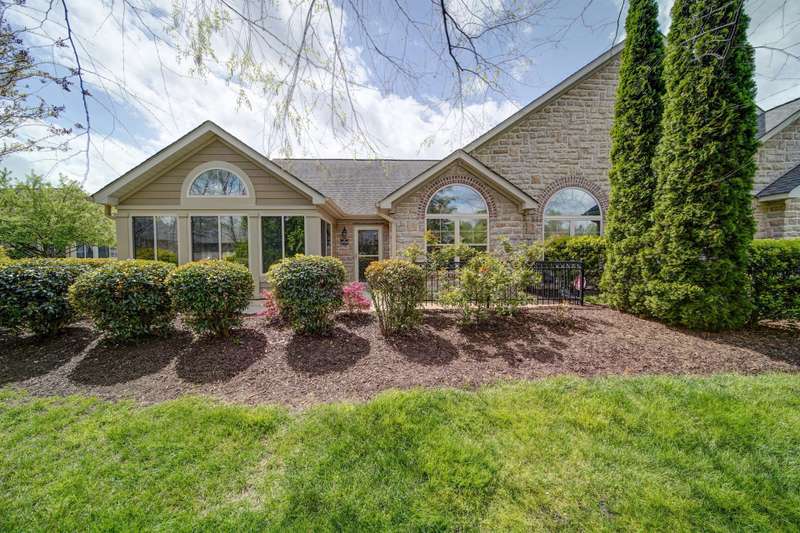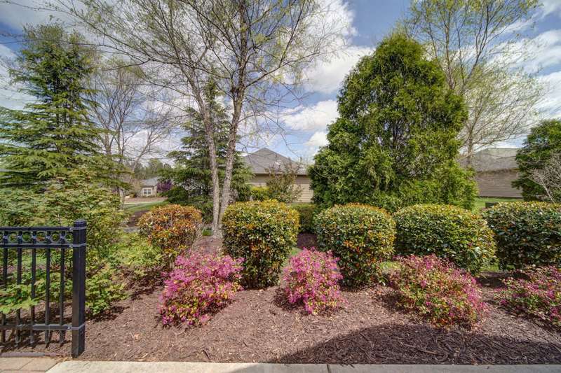 Immaculate townhome in this 55 + community. Improvements include new LVP flooring throughout, quartz countertops and tile backsplash in kitchen, GE Profile appliances, Moen kitchen (MotionSense) and bathroom faucets, custom closet shelving. Electric fireplace insert,Toto universal/ADA height toilets and CPI security system. The kitchen features pull-outs in cabinets, soft close cabinets and drawers, and under & over cabinet lighting. Additional features include stacked stone fireplace, service sink in laundry room, Ring doorbell camera, and garage keypad/camera. Newly painted.Primary bathroom includes double sinks and a step-in shower, and the secondary bathroom includes a walk-in jacuzzi tub. Tinted windows throughout add a layer of added privacy and protection from the sun. The garage includes cabinets for storage as well as radiant heaters, rubber mat flooring, laser parking assistance, and gateway internet control.Private patio overlooks the community stream/water feature.