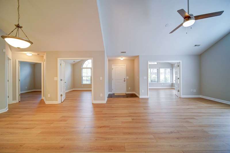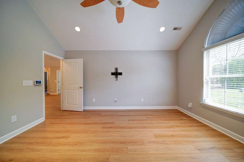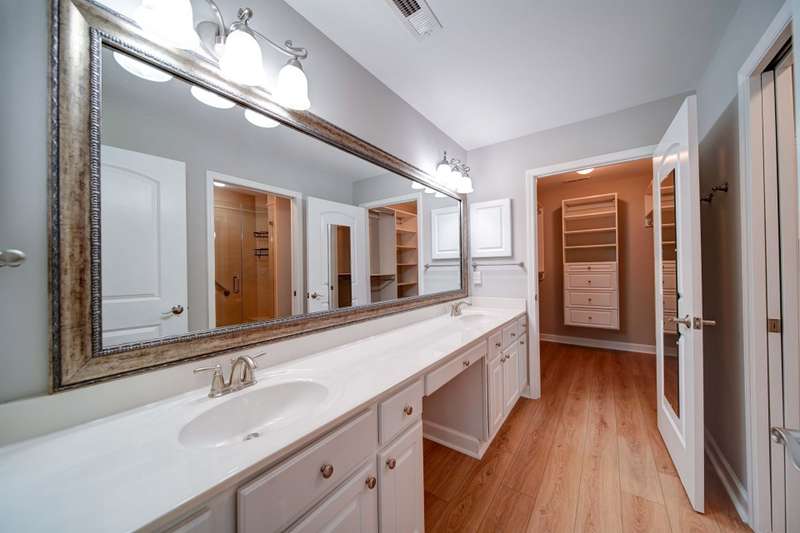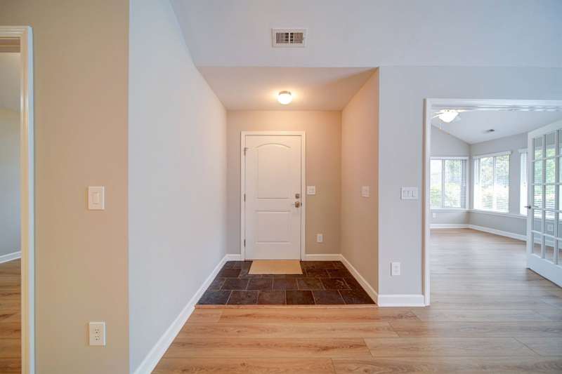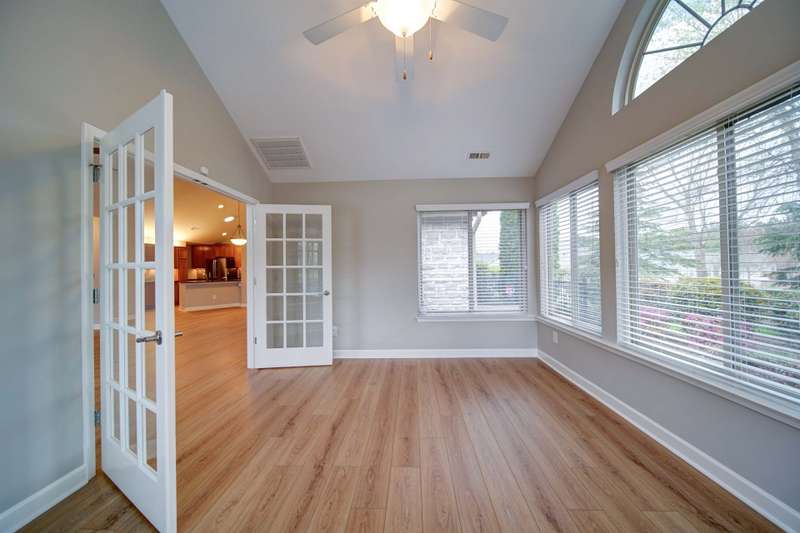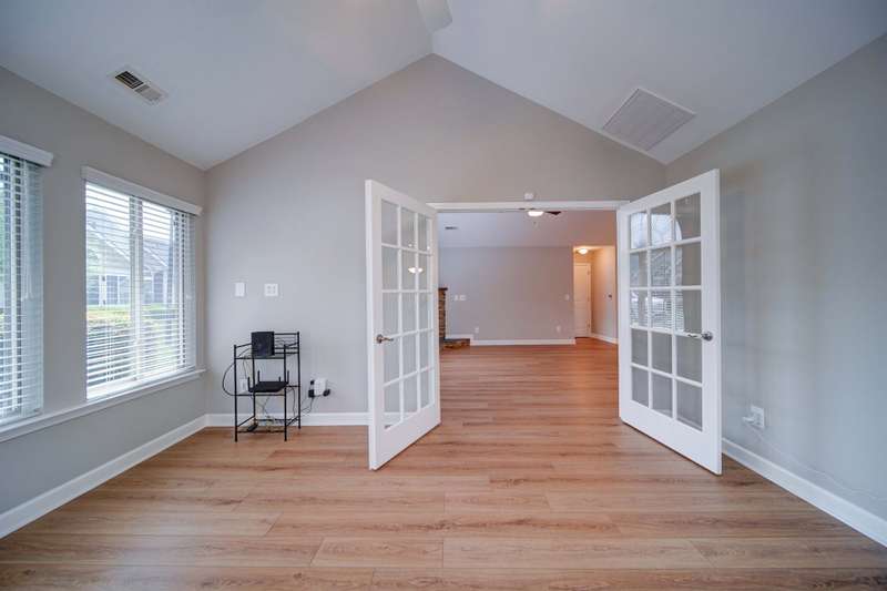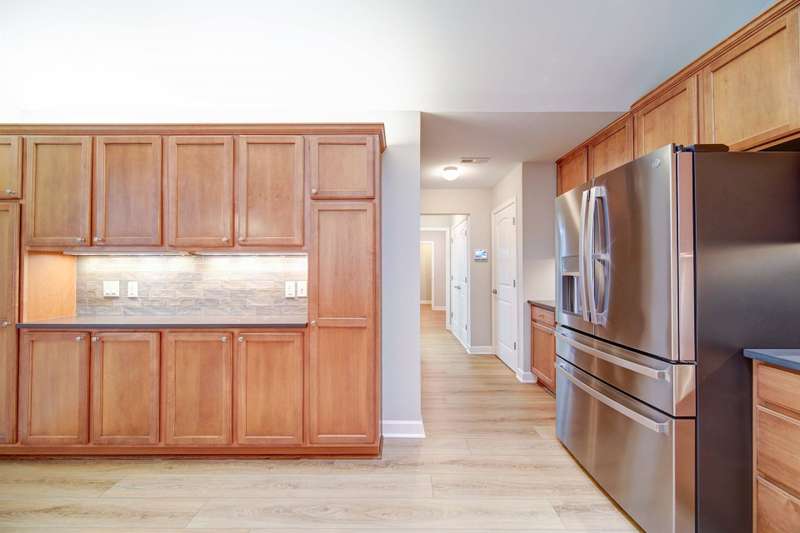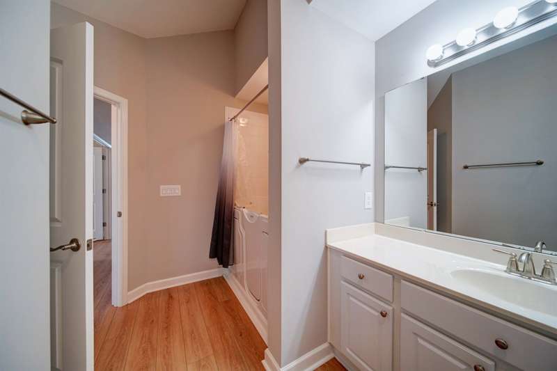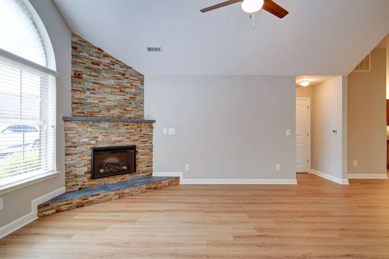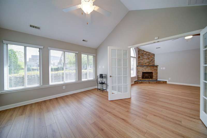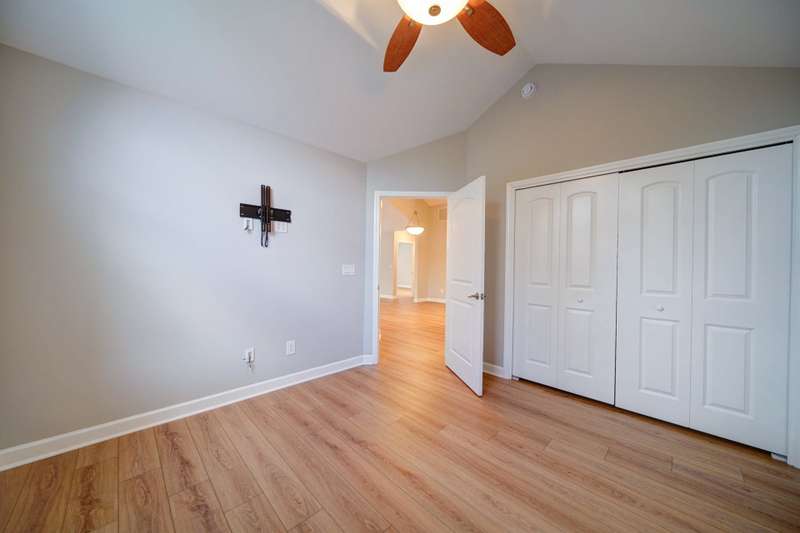 Immaculate townhome in this 55 + community. Improvements include new LVP flooring throughout, quartz countertops and tile backsplash in kitchen, GE Profile appliances, Moen kitchen (MotionSense) and bathroom faucets, custom closet shelving. Electric fireplace insert,Toto universal/ADA height toilets and CPI security system. The kitchen features pull-outs in cabinets, soft close cabinets and drawers, and under & over cabinet lighting. Additional features include stacked stone fireplace, service sink in laundry room, Ring doorbell camera, and garage keypad/camera. Newly painted.Primary bathroom includes double sinks and a step-in shower, and the secondary bathroom includes a walk-in jacuzzi tub. Tinted windows throughout add a layer of added privacy and protection from the sun. The garage includes cabinets for storage as well as radiant heaters, rubber mat flooring, laser parking assistance, and gateway internet control.Private patio overlooks the community stream/water feature.