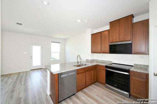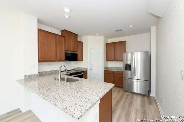 Welcome to your new home! Come tour this new build (2023) 3-bedroom 2.5-bathroom located in New Braunfels. As you step inside you are welcomed by a large open living room, dining area and kitchen. The kitchen features nicely upgraded stainless steel appliances and are just waiting for the Chef in the family to work their magic. Kitchen also features granite counter-tops and an upgraded Moen faucet. The primary bathroom features a walk-in shower and a separate 42 inch garden-style tub. Durable vinyl-plank flooring and a classic entry door are featured at the main living area. Subjects' rear yard features a 10 x 10 concrete patio area and yard is fully fenced. Front and rear yard feature an automatic irrigation system. Subject is a quick drive to the Guadalupe River and Lake McQueeney. Subject also offers easy access to New Braunfels and the many outdoor adventures available.