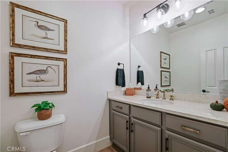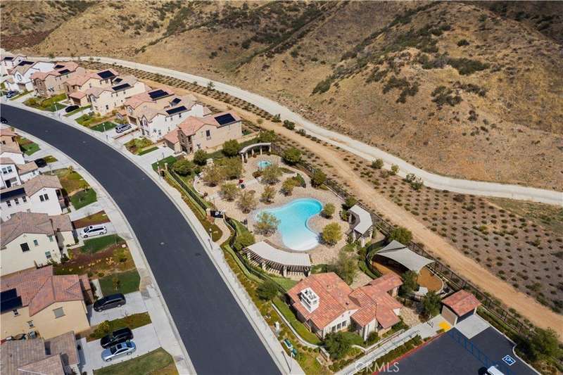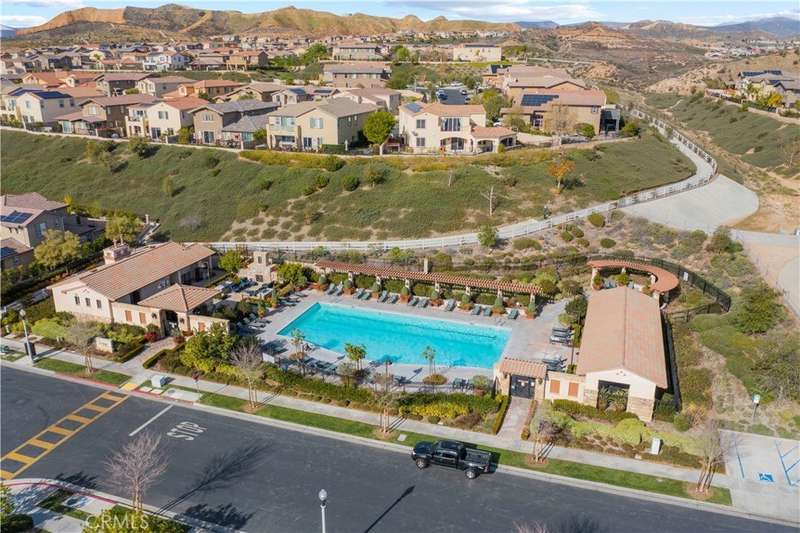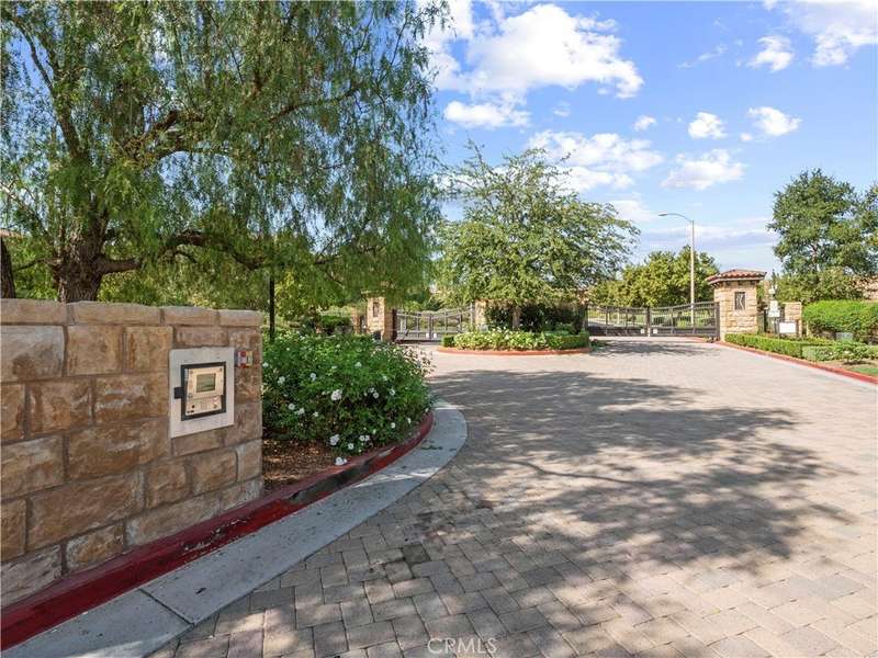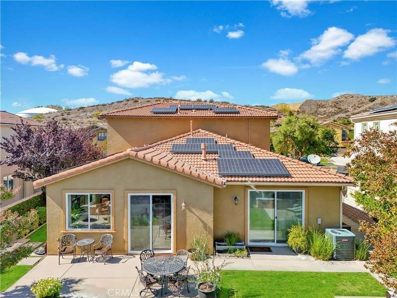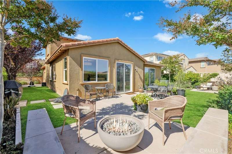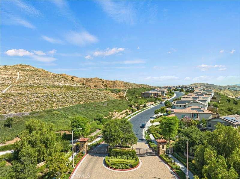 Welcome to one of Valencia's most prestigious gated communities! Enjoy luxury living behind the gates of West Hills! This home offers a wonderful balance of elegance and comfort, featuring A MAIN FLOOR PRIMARY SUITE. The recently updated primary bathroom features a free-standing soaker tub and separate walk-in shower with decorative hexagon porcelain floor tiles. In addition, there is a guest bedroom, bathroom, powder room and laundry room with sink, on the main level. The open concept floor plan creates a seamless flow between the kitchen, dining, and family room, perfect for gatherings. The stunning kitchen features a generous center island with seating, pendant lighting and gorgeous quartz countertops. Additional kitchen upgrades include stainless steel appliances and a stainless steel farmhouse sink with decorative faucet. On the second level, you'll find a spacious loft, 2 bedrooms with walk-in closets and a full bathroom. Relax in the recently upgraded backyard with lush greenery, various patio areas, seating walls, a fire pit, ambiance lighting , as well as a Smart Control irrigation system. This home features a solar power system to help reduce energy costs. Such an amazing location, close to all community amenities, schools, parks, shopping and many dining options!