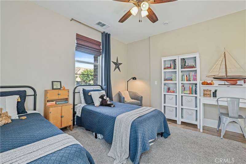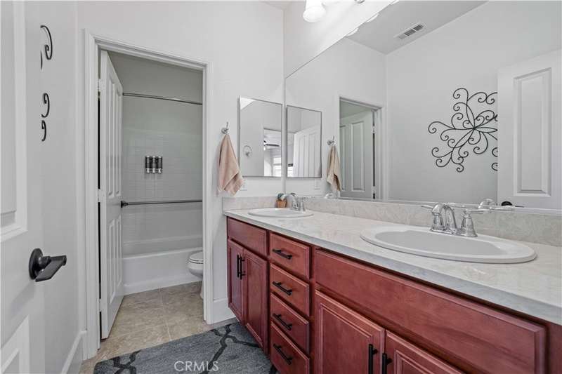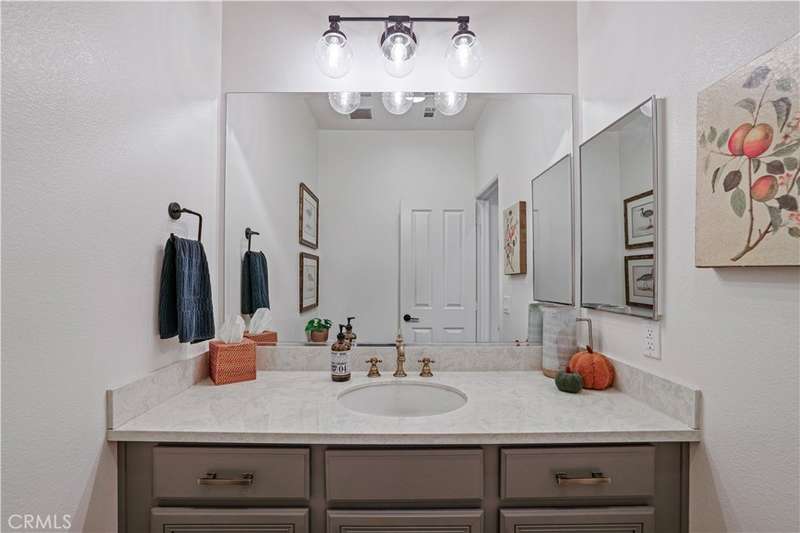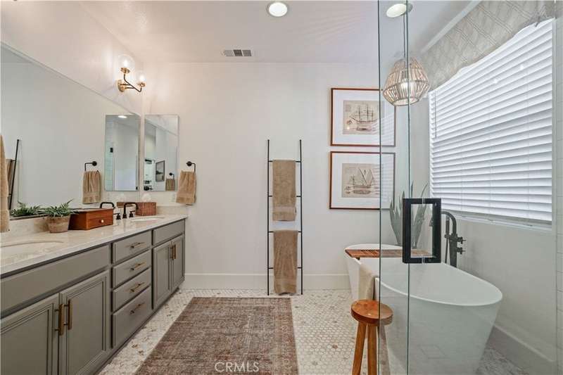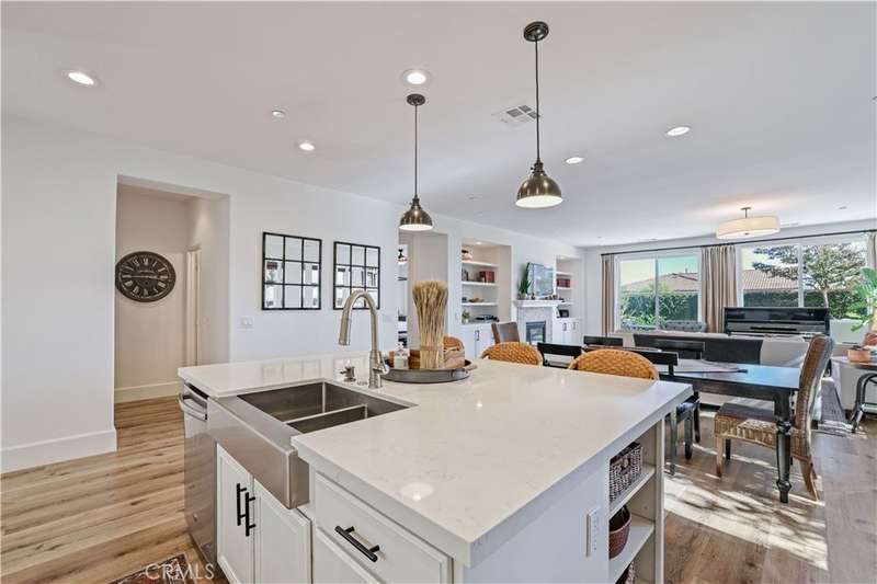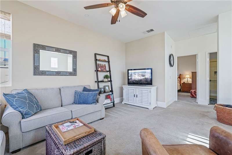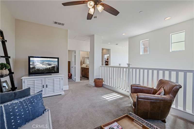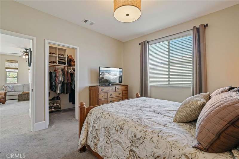 Welcome to one of Valencia's most prestigious gated communities! Enjoy luxury living behind the gates of West Hills! This home offers a wonderful balance of elegance and comfort, featuring A MAIN FLOOR PRIMARY SUITE. The recently updated primary bathroom features a free-standing soaker tub and separate walk-in shower with decorative hexagon porcelain floor tiles. In addition, there is a guest bedroom, bathroom, powder room and laundry room with sink, on the main level. The open concept floor plan creates a seamless flow between the kitchen, dining, and family room, perfect for gatherings. The stunning kitchen features a generous center island with seating, pendant lighting and gorgeous quartz countertops. Additional kitchen upgrades include stainless steel appliances and a stainless steel farmhouse sink with decorative faucet. On the second level, you'll find a spacious loft, 2 bedrooms with walk-in closets and a full bathroom. Relax in the recently upgraded backyard with lush greenery, various patio areas, seating walls, a fire pit, ambiance lighting , as well as a Smart Control irrigation system. This home features a solar power system to help reduce energy costs. Such an amazing location, close to all community amenities, schools, parks, shopping and many dining options!