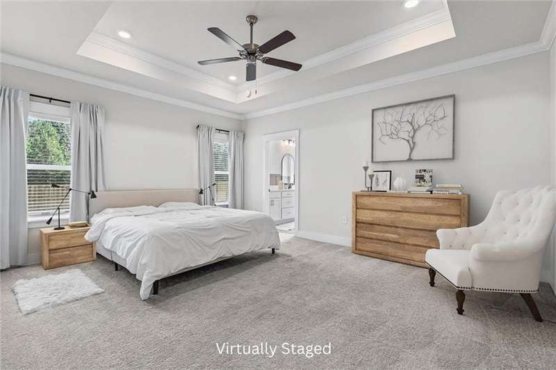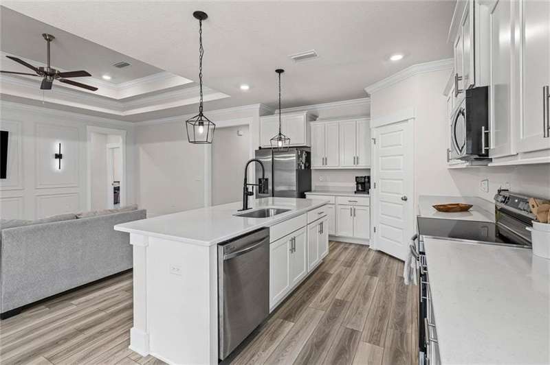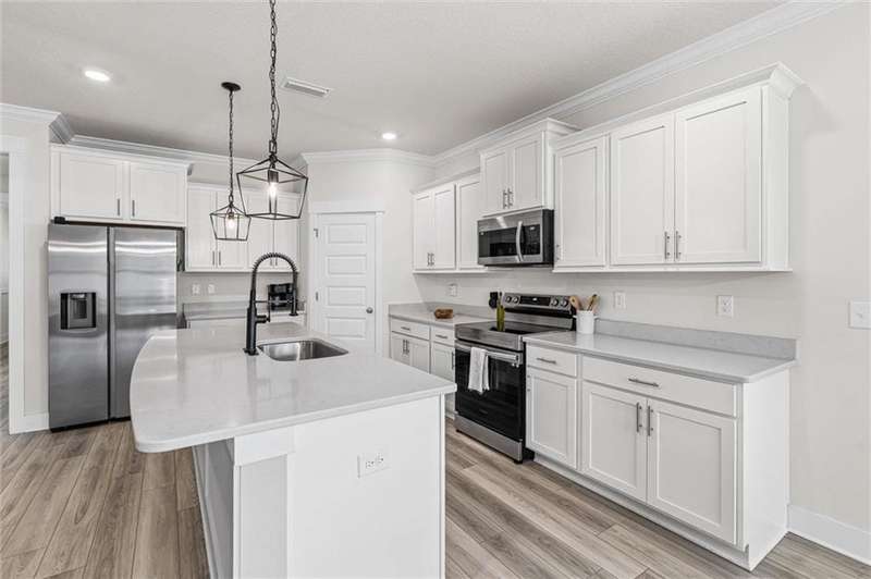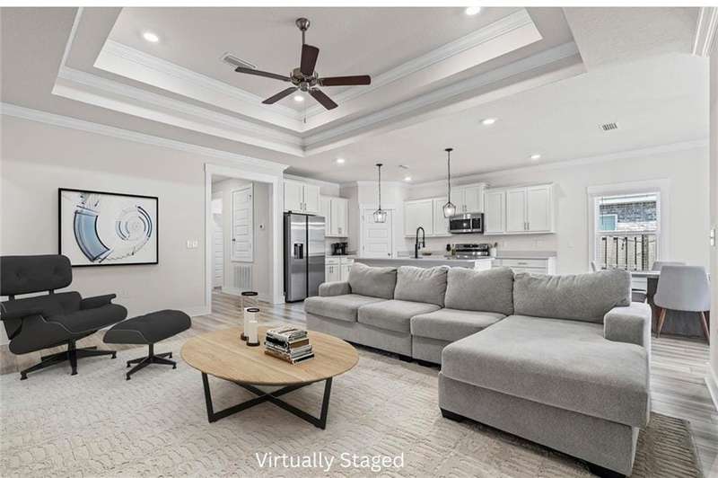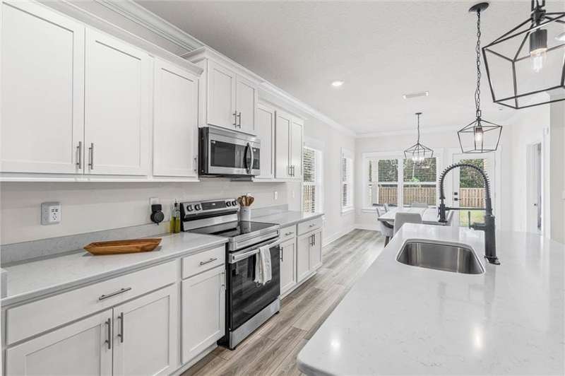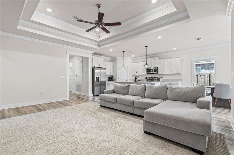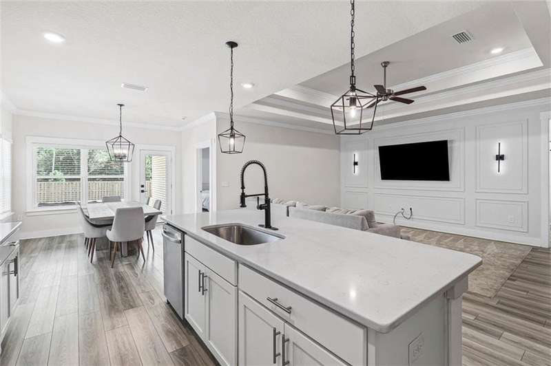 Back on Market at no Fault of the Seller. Look at this stunning, better-than-new, single-story residence in Foley's Quail Landing subdivision! Well-designed split 4/3 spread across 2,117 square feet. Gorgeous custom features include Lyra Quartz countertops, Crown Molding, and Tray Ceilings. It's in Triple Mint condition inside and out, and it's move-in ready - including blinds and a 6-foot privacy fence! Speaking of privacy, this lot backs to neighborhood common area, so you won't have a neighbor directly behind you. Buyer to verify all information during due diligence.