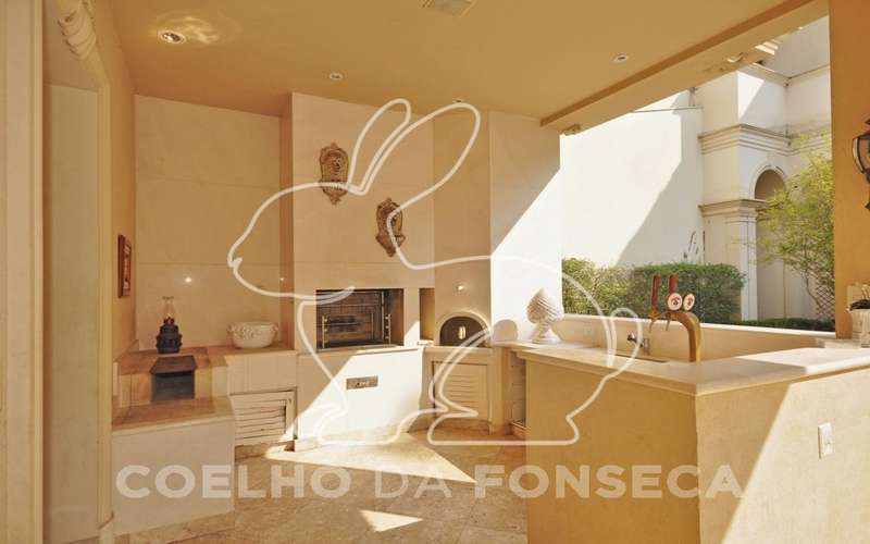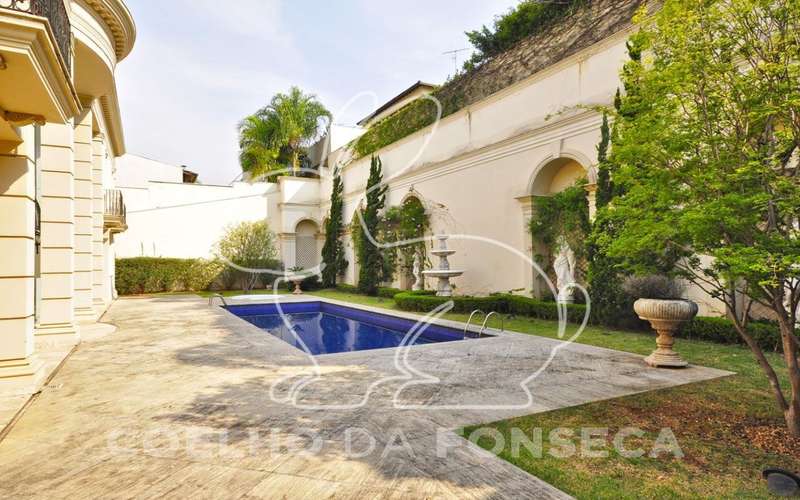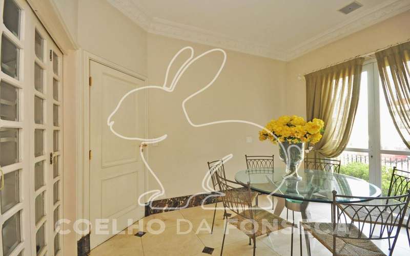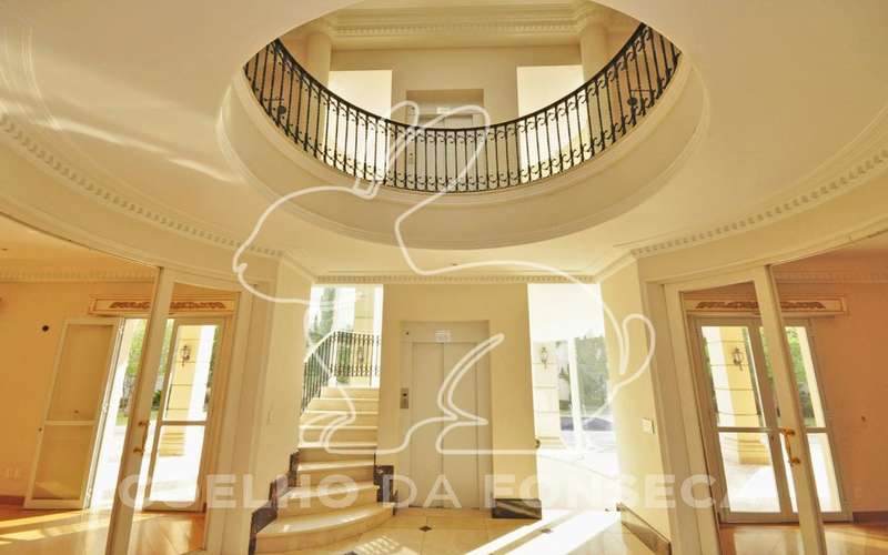 Residência com pé-direito envidraçado, varanda com espaço gourmet, hall de entrada em mármore, home theater, escritório. Elevador opção de sétima suíte no sótão. Localizada em alameda tranquila e sem saída.