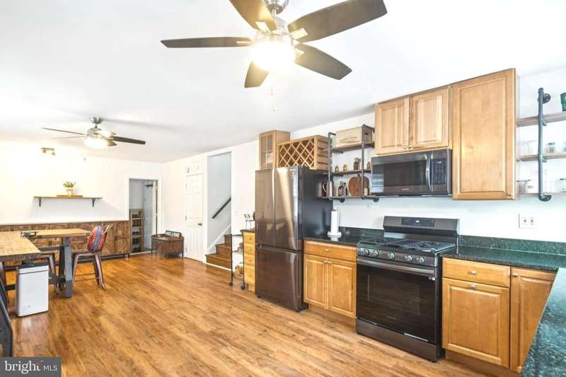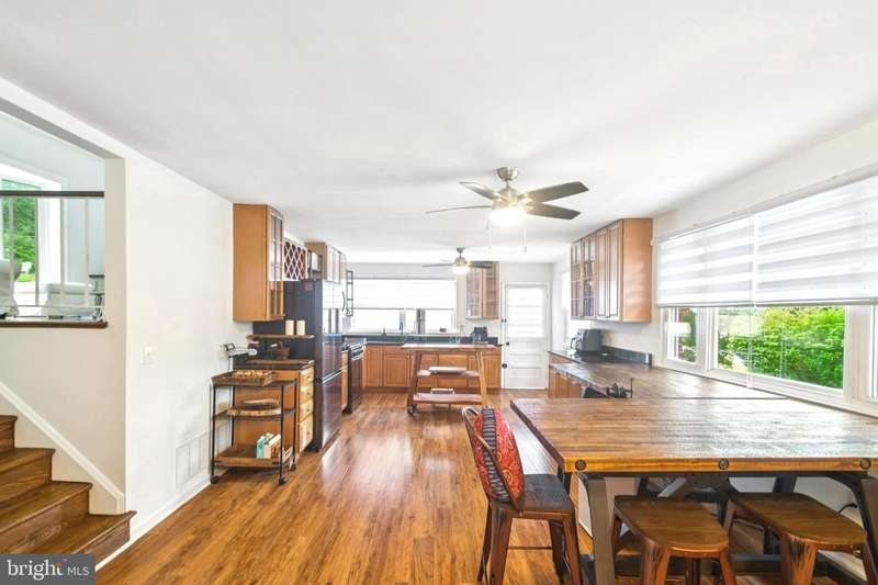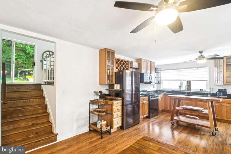 Welcome Home to this Spacious and unique 4 -level home with an enchanting back yard with one-of-a-kind view. Enjoy your own trailway to walk/hike in the afternoon and mornings. This is a true 4 bedroom home with 2.5 BA with plenty of space and a 1 car attached garage. The entry level offers a large kitchen and dining room with moisture-resistant laminate floors, granite counters, and the door out to a private fenced area. Take a few steps up into the main level where you enter a large light- filled living room with a large bay window, hardwood floors, wood-burning fireplace and sliding glass patio door leading out to the back patio and level backyard. A private bedroom with a bay window and its own half bath completes the main level. A few more steps up to 3rd level where you'll find additional three bedrooms with hardwood floors including a primary bedroom with a full bathroom with access out to the hallway. Third bedroom was converted into awesome closet space but can easily be converted back to a bedroom. The 4th level has a fully finished basement with a large rec room, a full bath and laundry room. All kitchen and laundry appliances purchased in the last 4 years. Newly installed 6-ft privacy fences on both sides of the house with stone patio. 8 ft. wood shed included. Front stone patio perfect for seasonal decor. Roof is inspected twice yearly by Arocon Roofing company and is in excellent shape. You will Fall in Love with this Remodeled Home so Convenient to Towson University, Hospitals & Schools. * Don't Wait....RUN! (NO PROPERTY SIGN)