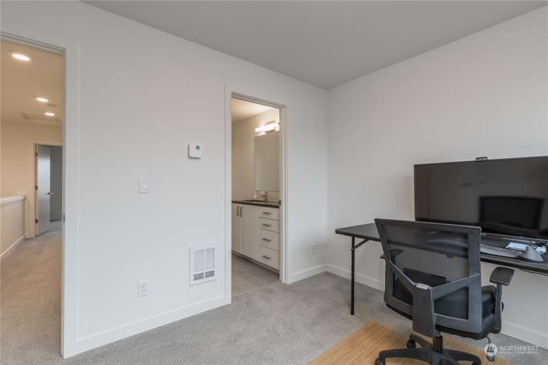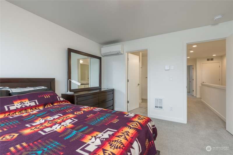 Exceptional townhome in Ten Trails condominium community, owner relocation due to job can be to your advantage to acquiring this upper-end rarely available townhouse. Amenities include a 2 car tandem enclosed garage with an electric car charging station, quartz counters in the kitchen and baths, a large stainless steel undermount sink in kitchen island, gas cooktop, soft close drawers, luxury vinyl plank flooring and wall-to-wall carpet, two Mitsubishi high efficiency ductless mini-splits (1 on 2nd floor, 1 on 3rd floor), high tech/SMART cable/wiring, a balcony with gas outlet, stainless steel appliances can lighting. Mountain view from bedroom of condo.