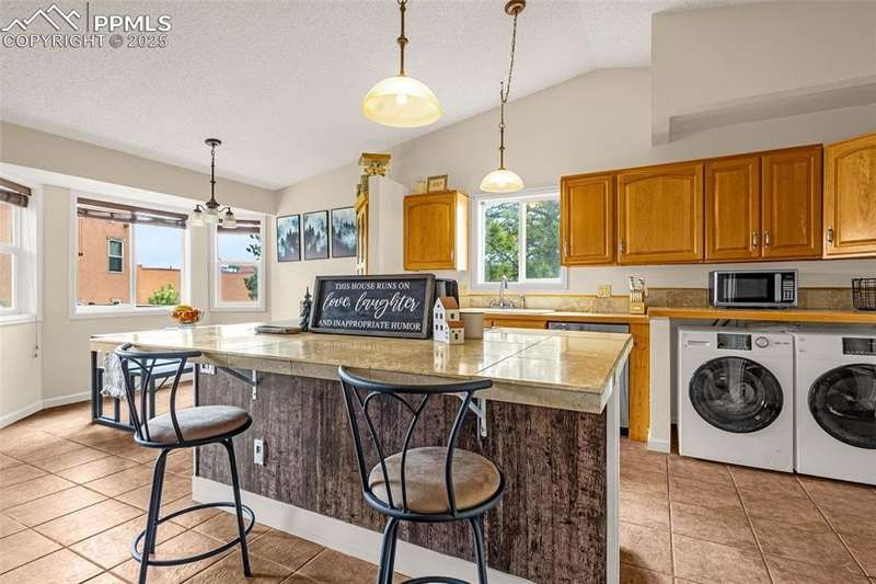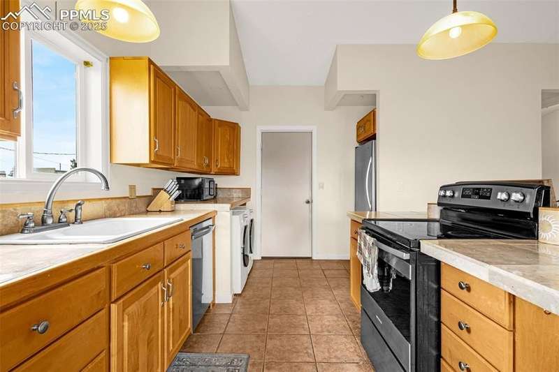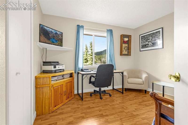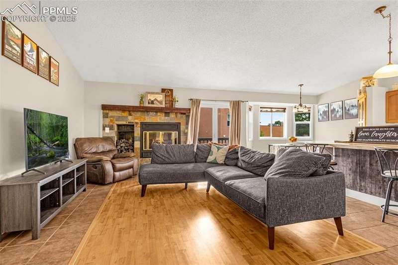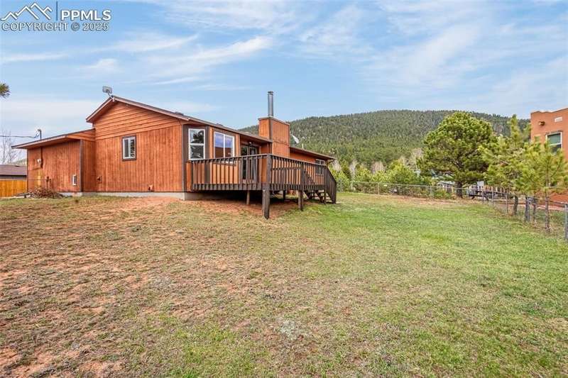 Welcome home to this charming ranch-style retreat offering main-level living on a spacious 0.37-acre lot with stunning Pikes Peak views! With 1,234 square feet of thoughtfully designed space, this 3-bedroom, 2-bathroom home is filled with comfort, convenience, and recent upgrades. Enjoy cozy evenings in the great room featuring vaulted ceilings, a fireplace, and a walkout to the oversized deck—perfect for taking in mountain sunsets or entertaining under the stars. At the heart of the home is the kitchen, seamlessly flowing into the open-concept dining and living areas—ideal for everyday living and hosting guests. The kitchen features a center island with breakfast bar, a dining nook, and all appliances included. The spacious primary suite offers a private bath and walk-in closet, while two additional bedrooms and a full bath complete this functional floor plan. Recent updates include a new furnace (2 years), a hot water heater (1.5 years), and a washer and dryer (1.5 years). Fresh interior paint and updated light fixtures add a modern touch. Step outside to enjoy the fully fenced, level backyard—ideal for gatherings, kids, pets, or simply relaxing in your own slice of Colorado. Located in a quiet, wildlife-friendly neighborhood, this home is a peaceful escape with breathtaking natural beauty all around.