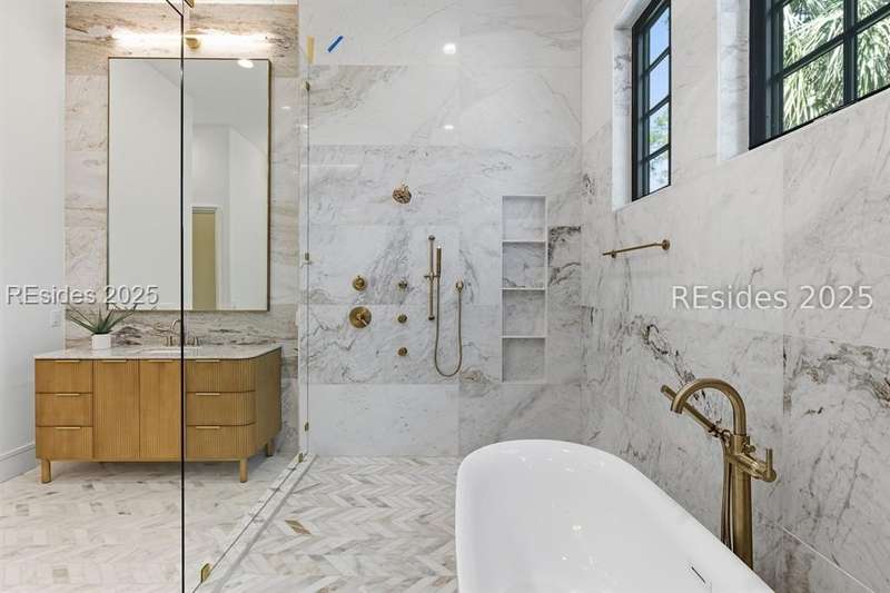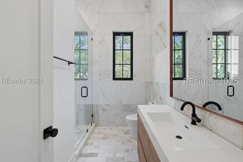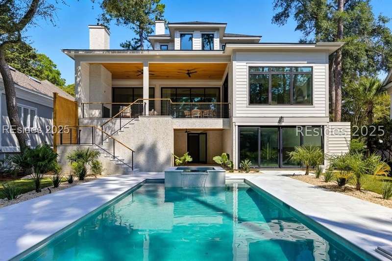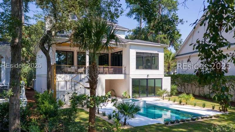 A rare opportunity to own a brand-new construction home in Hilton Head's premier private community. This remarkable residence combines modern design, thoughtful functionality, and elevated Lowcountry living. The main level features a stunning chef's kitchen with an open-concept dining and living space that flows into a spacious outdoor living area with a raised deck and an electric fireplace that overlooks the backyard, pool, and spa - perfect for year-round outdoor living. The primary suite, with a spa-inspired bath, features dual walk-in closets, a large wet room shower, and gorgeous floor-to-ceiling tile work. The main level home office provides a quiet workspace. Upstairs, find four ensuite bedrooms, each designed for comfort and privacy, while an elevator provides seamless access to all three levels. The lower level features a mudroom, a flexible recreation or fitness room, lanai, abundant storage, direct access to the pool and backyard, plus two garages with room for four cars. As a Wexford resident, you'll enjoy unmatched amenities: a private marina, championship golf, tennis, pickleball, croquet, community firepit, clubhouse dining, and a resort-style pool complex. Even more exciting, Wexford is set to unveil a newly expanded Clubhouse and a brand-new Harbour Center in April 2026, further enhancing the community's vibrant lifestyle.8 Fairfax Lane is more than a new home - it's your chance to embrace modern luxury in one of Hilton Head Island's most distinguished private communities.