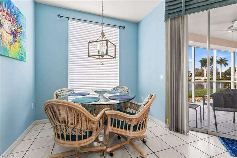 ALREADY BOOKED FOR JAN-MARCH 2026! AVAILABLE FOR APRIL 2026 FOR $5000 + 11.5% SALES TAX. $1500 SECURITY DEPOSIT & $150 EXIT CLEANING FEE. This 2 bedroom +den (which offers 2 twin beds),it is a 3 BEDROOM. A COASTAL PARADISE is just waiting for you !UTILITIES, INTERNET AND WATER, CABLE INCLUDED! Relax on your screened in lanai after a long day on the sugar sand beaches and take in the warm sunsets reflecting off of the serene lake and watch the wildlife each evening. You will never want to leave this place! Primary bedroom has a king bed and the ensuite bath has a separate soaking/zen tub and walk in shower. 2nd bedroom has a queen bed. 2nd full bath has tub/shower combo. Prepare your meals and dine overlooking the lake! WALKING DISTANCE TO THE FABULOUS COMMUNITY POOL/SPA! BBQ area by the pool!Laundry in residence.1 car garage.NO PETS, NO SMOKING, NO MEMBERSHIP AVAILABLE TO PRIVATE CLUB.