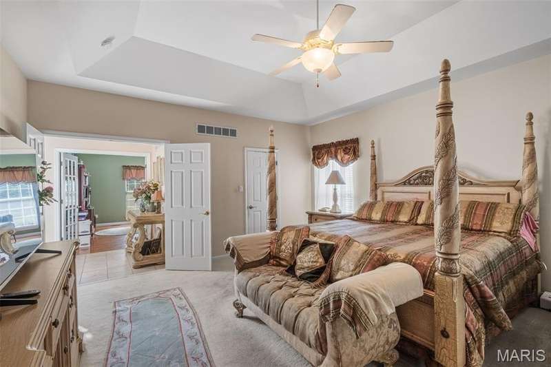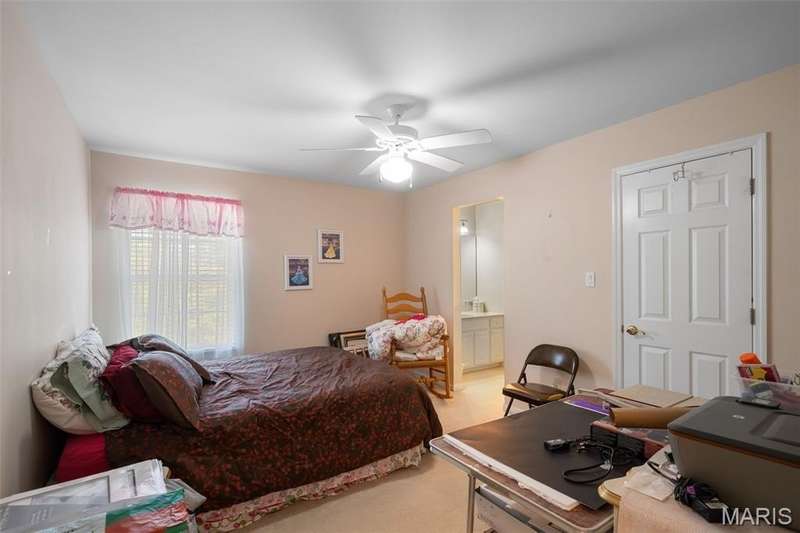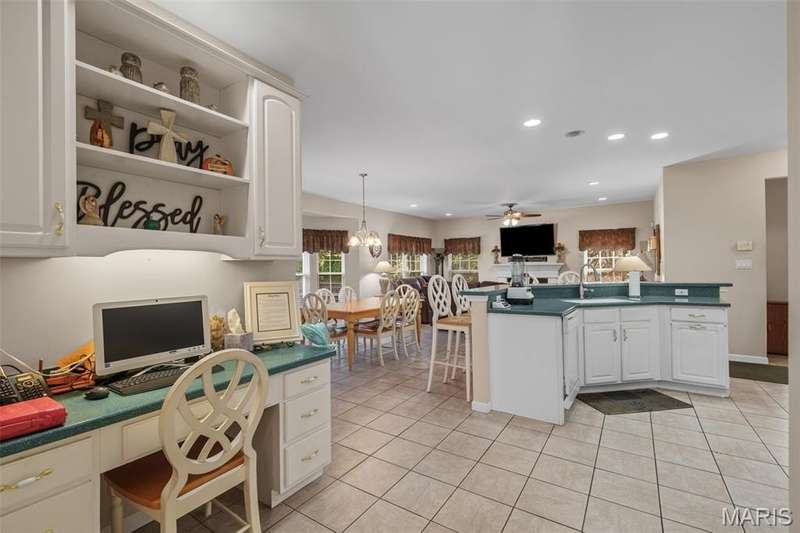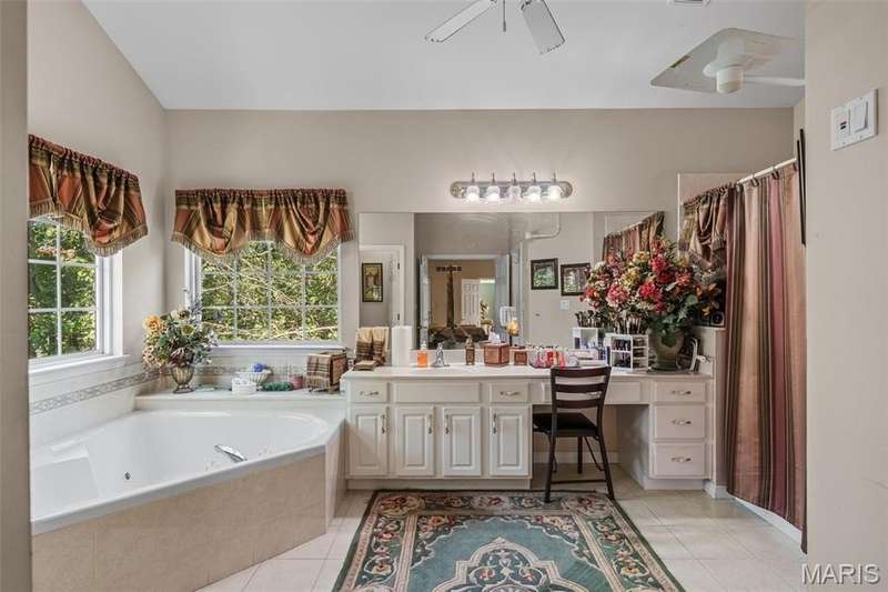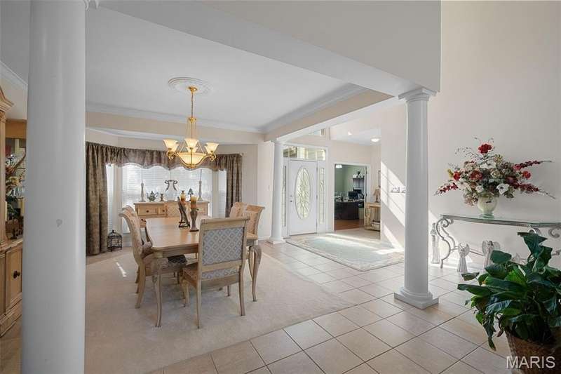 Nestled on a beautiful half-acre lot and with over 4,700 square feet of living space, this 4-bedroom, 4.5-bath home offers versatility and comfort throughout. You’ll love the soaring ceilings and abundance of natural light streaming through the arched windows. The dining room, enhanced with detailed millwork, sets the stage for memorable gatherings, while the open kitchen offers wraparound counters, a walk-in pantry, and breakfast nook. The cozy hearth room adds to the charm while the versatile home office, mudroom/laundry area, and convenient guest bath round out the main level. The phenomenal primary suite boasts vaulted ceilings, a walk-in closet, and a luxurious bath. Upstairs, you'll find three additional bedrooms that share a bath, while the loft area provides space for hobbies. The finished lower level expands the living area with multiple recreation zones, a kitchenette, and abundant storage and workshop space. Walkout access leads to the backyard oasis, where mature trees surround the in-ground pool. Located just minutes from parks, shopping, and dining, this home offers both convenience and enduring value. This property has built-in equity and presents an exceptional opportunity for you to add your updating touches as you prepare to live, grow, and thrive in one of Chesterfield’s most sought-after neighborhoods.