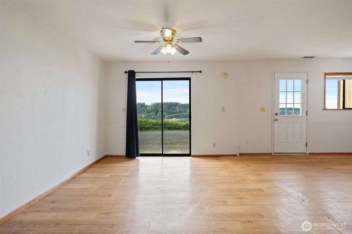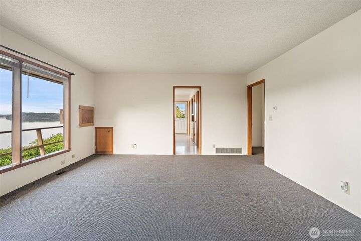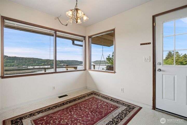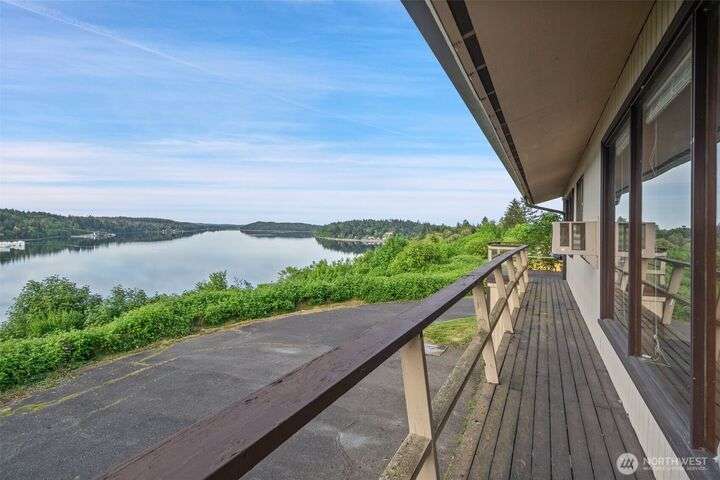 Take a deep breath and relax as you enjoy the beautiful view of Oakland Bay! There is so much potential with this 2210 sf home on 1 acre. Home is currently set up as a duplex with two separate living spaces. Live on one story while receiving rental income from the other! Swap the upper/lower closets back to stairs and easily convert it to a single family home. Updated gas furnace and hot water heater serves both levels. Roof is aprox 8 years old and was installed with lifetime gutters. Paved driveway, plenty of parking and room for an RV. Large potential garden area or use your imagination.
