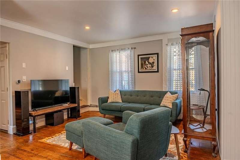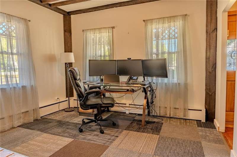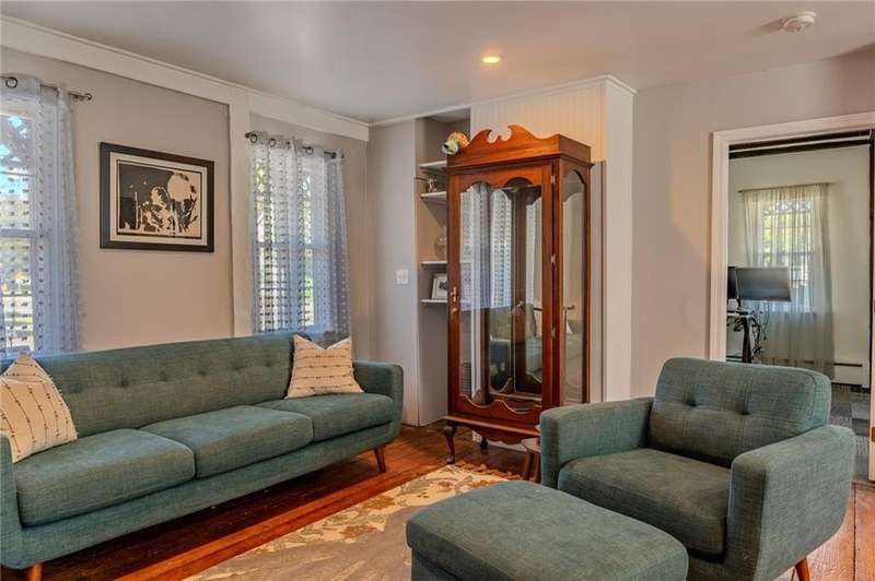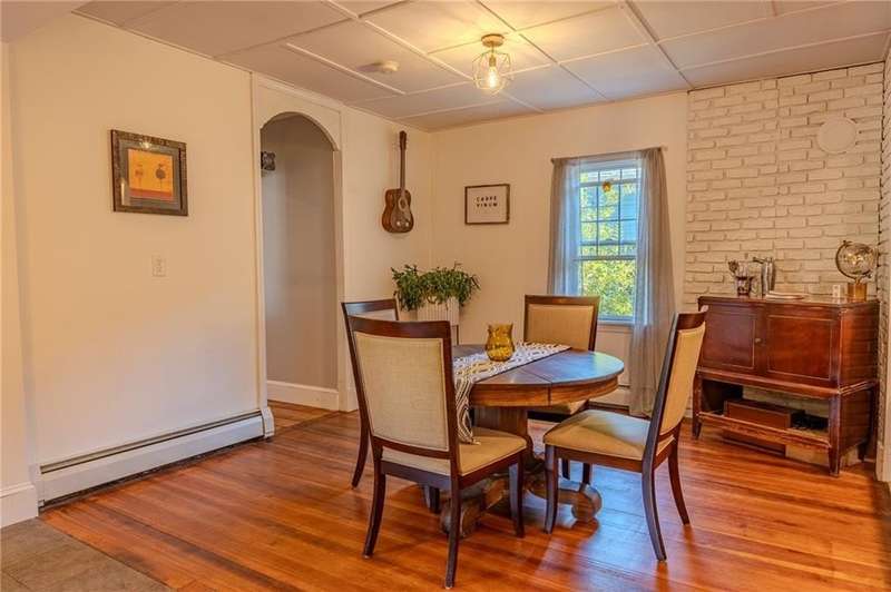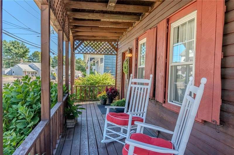 This 1857 Cape-style home offers the perfect blend of historic charm and modern living. A welcoming wrap-around porch, restored wide-plank hardwood floors and butler's pantry add character while recent updates include a thoughtfully renovated kitchen and first-floor bathroom. An office/bedroom on the first floor and living room provide space and functionality for your busy lifestyle. The bright family room off the kitchen has upgraded flooring and a newly installed slider leading to a lovely patio for outdoor entertaining. An attached, oversized two-car garage provides ample parking and a generous space ideal for a workshop, storage, or hobby area. As a bonus, one of the garage bays has a back door, which allows convenient wide access to the backyard and patio area. The oversized two-level outbuilding/barn needs renovation, but has incredible potential for extra living space, a studio, or additional storage. The property also includes a deeded easement with a wide entrance to Mapledale St at the back of the parcel. Store your RV, trailer or other "toys" on the flat lower yard. The Washington Secondary Bike Path ("Trestle Trail") is just a short walk away. The Anthony section of Coventry is centrally located in RI, with easy access to highways, shopping, schools and restaurants. This unique property is move-in ready with an opportunity for you to add value over time. Make your appointment today!