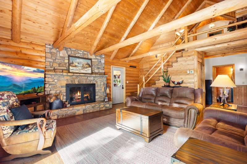 Charming Log Home in the Coveted Ski Mountain Acres Community ? Blowing Rock, NCNestled on an exceptional 1.41-acre lot in the highly desirable Ski Mountain Acres neighborhood, this authentic 3-bedroom, 3.5-bath log home offers timeless mountain charm and versatile living potential?ideal as a primary residence, second home, or vacation rental.Inside, the home welcomes you with vaulted ceilings, exposed log cross beams, hardwood floors in common areas, and a striking stone fireplace that creates a warm, inviting atmosphere in the Great Room?perfect for cozy mountain evenings.The main level features a spacious living room, dining area, well-appointed kitchen, half bath, mudroom, laundry, and a generous primary suite with en-suite bath?providing convenient one-level living.Upstairs, a vaulted open sitting area/loft offers flexible use as a reading nook or office space, along with two spacious bedrooms that share a full bath.The walk-out lower level includes a large finished common area, full bath, and ample space for a family room, bunk room, or game area?with plenty of improvement potential to suit your needs. The original garage has been converted into additional storage space, but could be reimagined if desired.Step outside to enjoy the covered rocking chair front porch, wraparound deck, and a gently sloping, usable yard with a fire pit?ideal for outdoor entertaining or relaxing after a day in the mountains.With ample parking from two driveways, this well-located mountain retreat is just minutes from the heart of downtown Blowing Rock and convenient to ski slopes, hiking, and Blue Ridge Parkway adventures.Don't miss this rare opportunity to own a true log home in one of Blowing Rock's most sought-after communities.