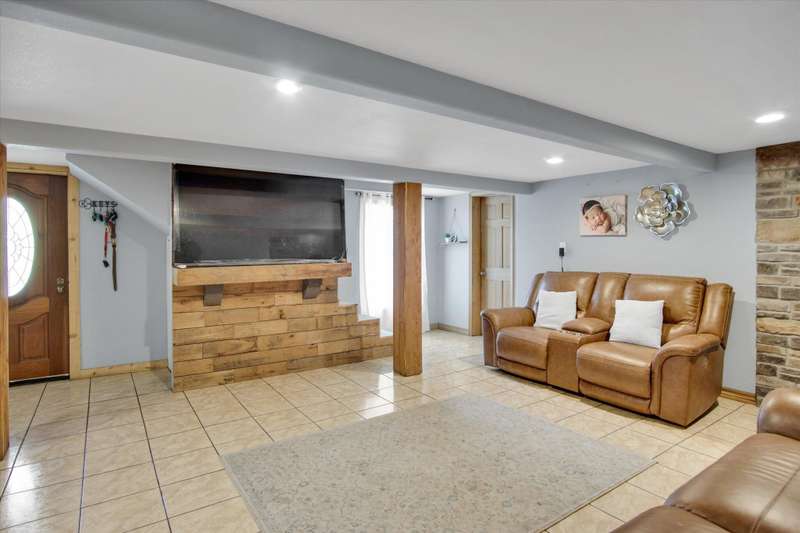 Welcome to 4155 Oakwood Rd in charming Merriam Woods!This spacious two-story home offers 1,588 sq ft of comfortable living space, featuring 4 bedrooms (2 non-conforming) and 2.5 bathrooms, perfect for a growing family!Step inside and you'll find the open-concept kitchen and living room on the main floor, complete with a cozy fireplace that makes the space feel warm and inviting. The large laundry room is conveniently located on the first floor as well, with direct access to the backyard. Upstairs, you'll find all the bedrooms, including a primary suite with an attached full bathroom, and a half bath in the hallway for added convenience.Take a moment to appreciate the thoughtful details the owners have added, elegant wood accents blend beautifully with the tile flooring, creating a stylish and homey atmosphere. Outside, the spacious patio features stunning stonework, making it the perfect space to entertain or unwind.Don't miss this one, it's the perfect place to call home.