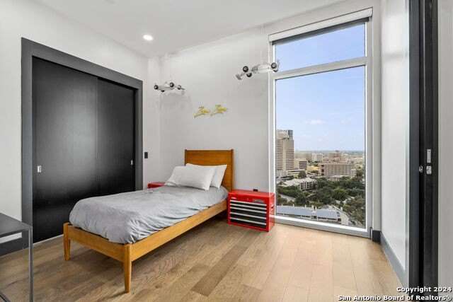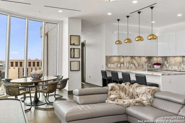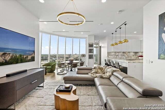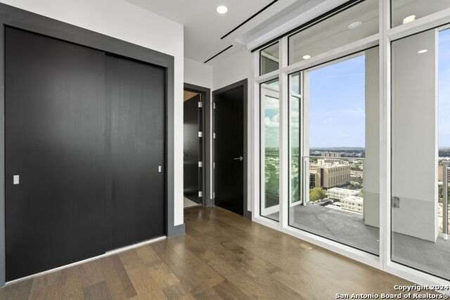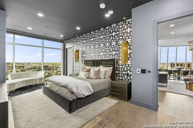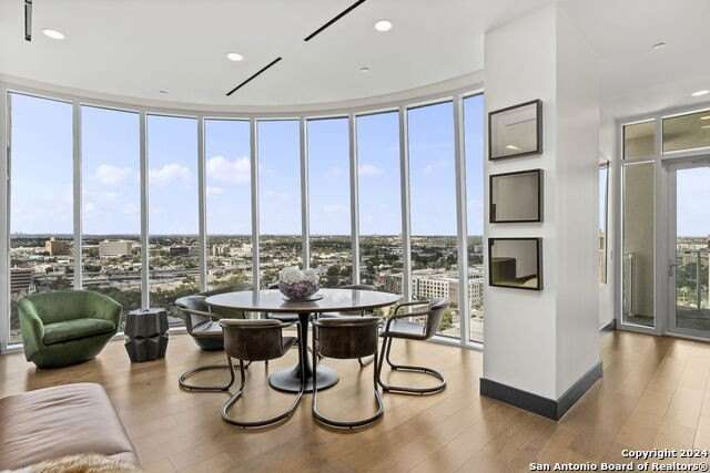 Situated high atop the luxurious Thompson Hotel in the heart of downtown San Antonio, this exquisitely crafted condominium offers an unparalleled living experience. Featuring breathtaking floor-to-ceiling windows, the expansive living spaces are immersed in natural light, framing sweeping city views. Every detail has been meticulously curated, from the sleek, modern kitchen outfitted with premium finishes and high-end appliances to the serene bedroom suite that showcases captivating skyline vistas. Residents are afforded full access to the hotel's sophisticated amenities, including a world-class restaurant, sky bar, indulgent spa, state-of-the-art fitness center, and personalized concierge services. This exclusive residence, located at the epicenter of the city's vibrant performing arts district, places you steps from premier entertainment, including the Tobin Center for the Performing Arts.