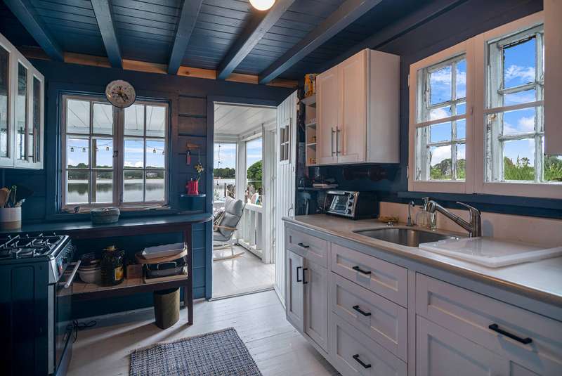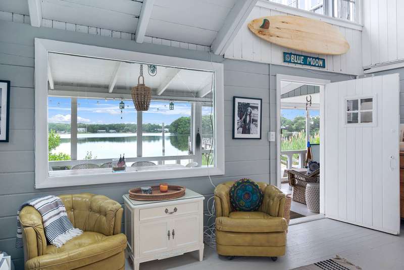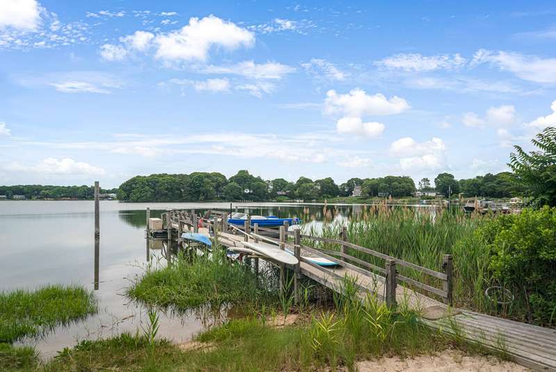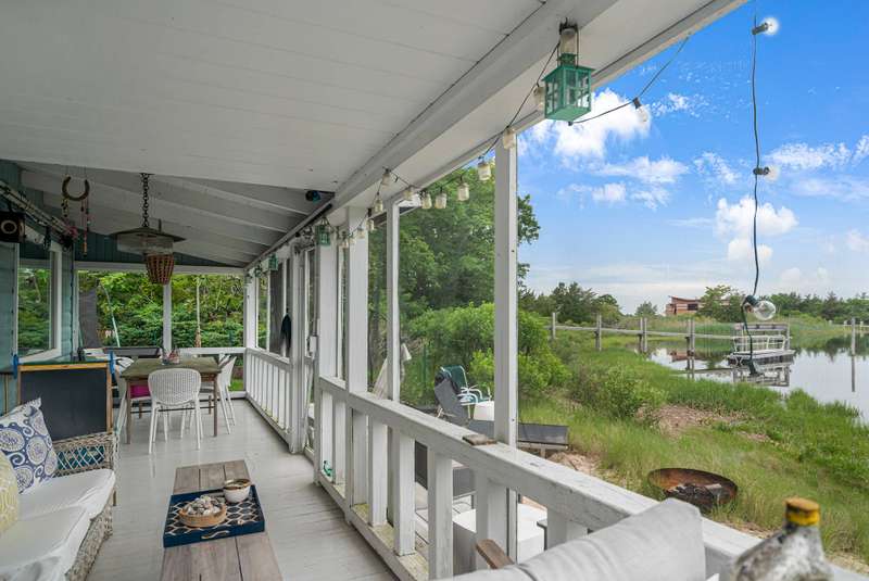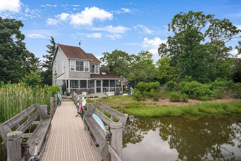 Two-story cottage on upper Sag Harbor Cove features a living room with fireplace, dining area, kitchen, three bedroom and two baths. Large screened porch and deck, very close to water. Rustic but charming.