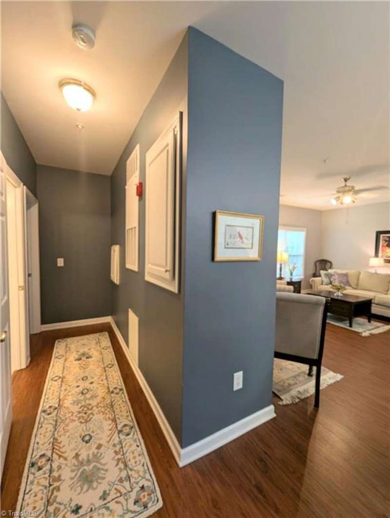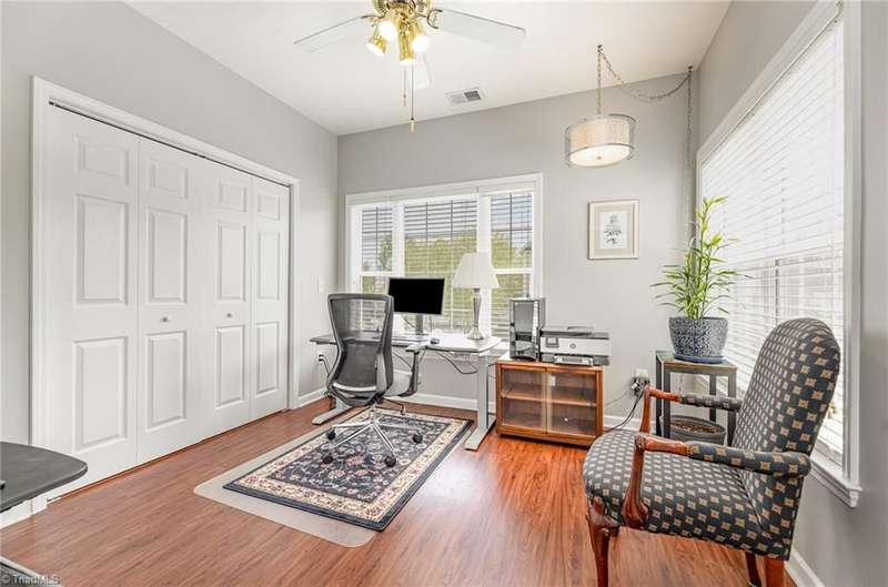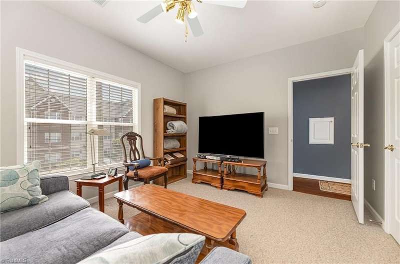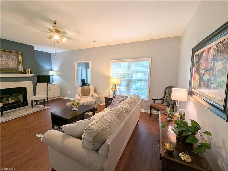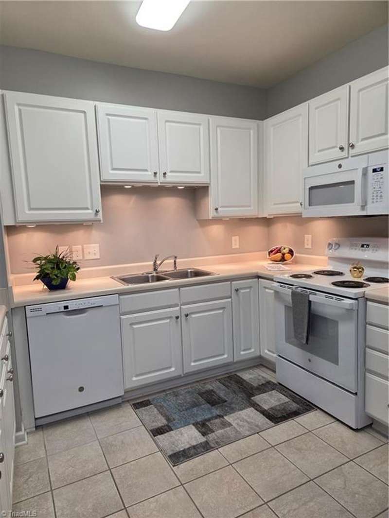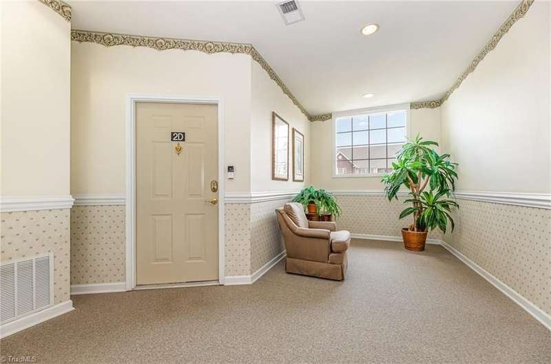 Immaculate, inviting, and perfectly placed! This one's worth seeing in person. Wake up to peaceful pond views and tall trees in this spotless, elevator access, smoke-free 2-bedroom, 2-bath condo, plus a flexible office/3rd bedroom. Light-filled and move-in ready, it offers 9' ceilings and a spacious kitchen designed for multiple cooks. Stroll to coffee shops, parks, trails, dining, and shopping, or enjoy quick drives to Greensboro, Winston-Salem, and High Point University just 4 miles away. Refrigerator remains. Building is FHA approved and features a monitored sprinkler system. The seller will leave the security system. valued at $2,000, with acceptable offer. It includes personal alarm system, keypad deadbolt, and heat rise detector and control panel. This is condo living at its best! Make your appointment today to see this well cared for beauty.