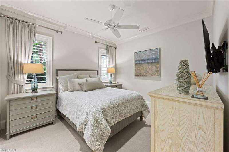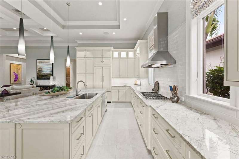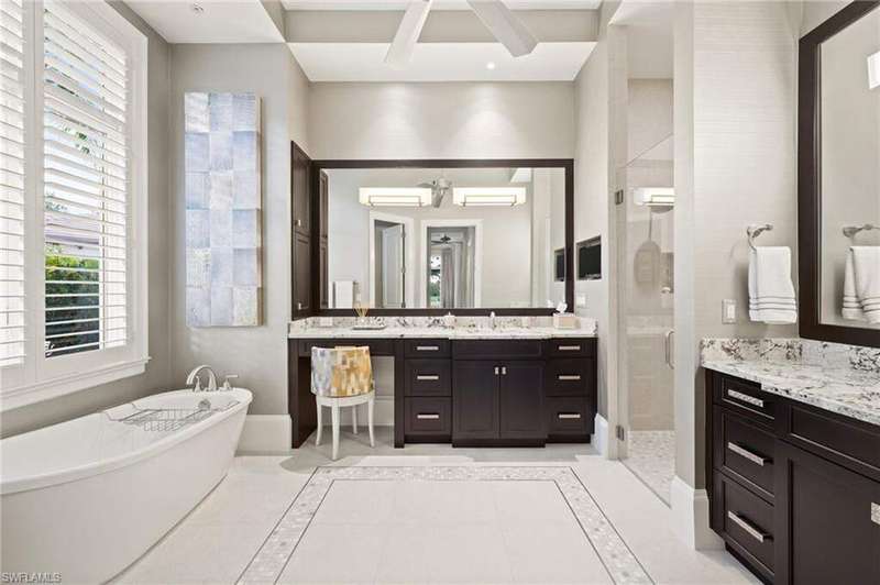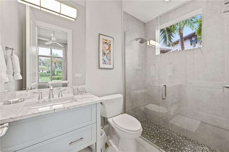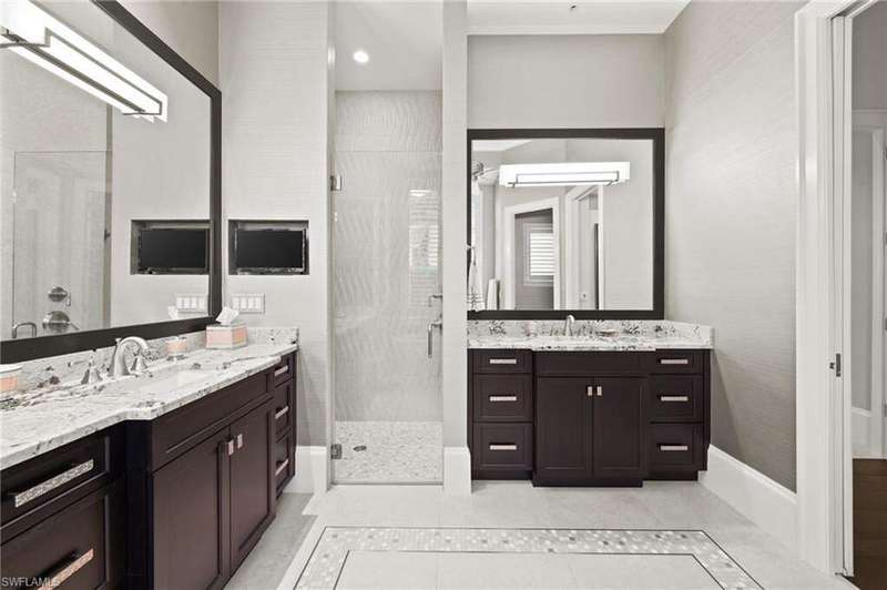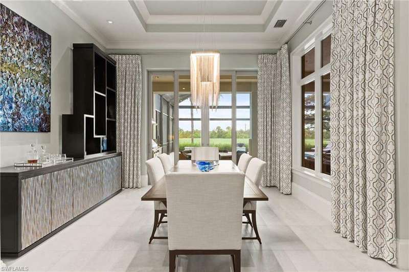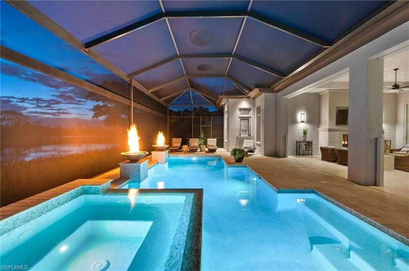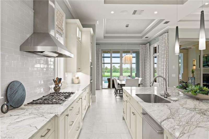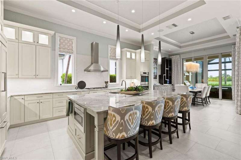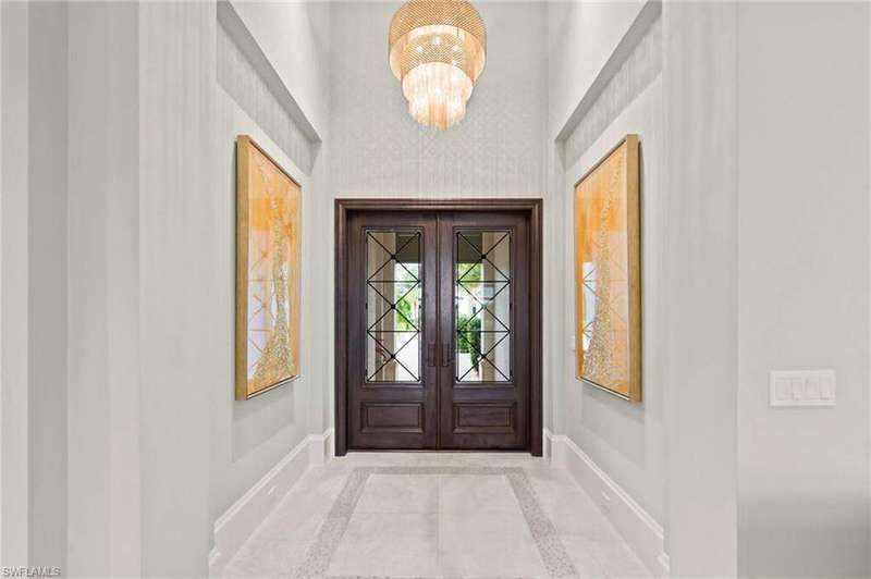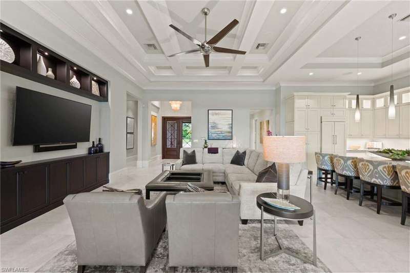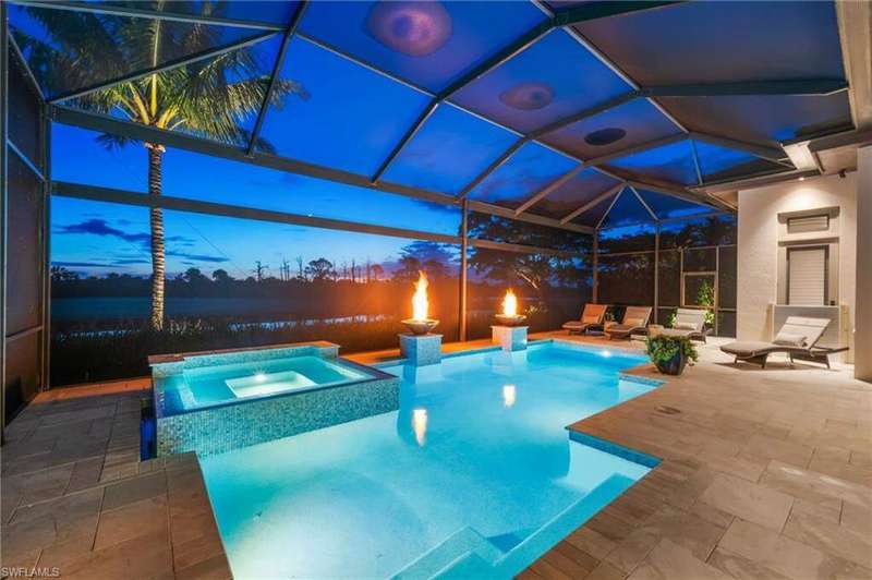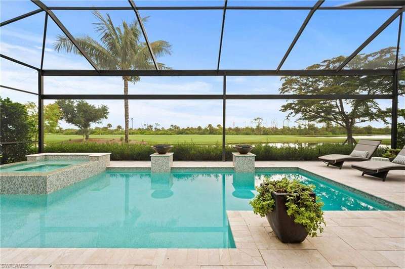 IMMEDIATE GOLF MEMBERSHIP AVAILABLE with this Luxurious West-Facing home offering lake, golf course, preserve views and glorious sunsets Experience elegant living in this stunning custom-built residence by Gulfshore Homes, professionally designed by Vogue Interiors and perfectly positioned in the exclusive enclave of Westlake Court. Step through double entry doors into a light-filled interior boasting 12-foot ceilings with exquisite detailing, designer tile flooring, and custom built-ins. The open-concept layout is ideal for entertaining, with the spacious great room and dining area flowing seamlessly to the outdoors through 10-foot impact resistant sliding glass doors. The chef's kitchen is a standout feature, offering a large center island, custom cabinetry with ample storage, under-counter microwave drawer, and a U-Line dual-zone wine cooler. Outside, the lanai is a true private retreat. Travertine tile surrounds a resort-style pool and spa, accented by dramatic Grand Effects fire and water features. A custom outdoor kitchen, covered dining area, and fireplace with handcrafted screen create the perfect setting for relaxed living and entertaining-all while enjoying unobstructed sunset views.The luxurious primary suite features detailed ceiling finishes, designer wall treatments, and customized walk-in closets. Two guest suites, a den/office, powder room, and an oversized 2.5-car garage complete this exceptional home. Additional highlights include a whole-house generator, Anderson impact resistant windows, custom window treatments, built-in sound system and ample garage storage. Enjoy the unmatched lifestyle West Lake offers from the brand new Beach Club on the Gulf to the resort-style pool, fitness center, Championship Pete & P.B Dye golf course, pickle ball, tennis, private boat launch to the Gulf and Estero Bay and so much more!
