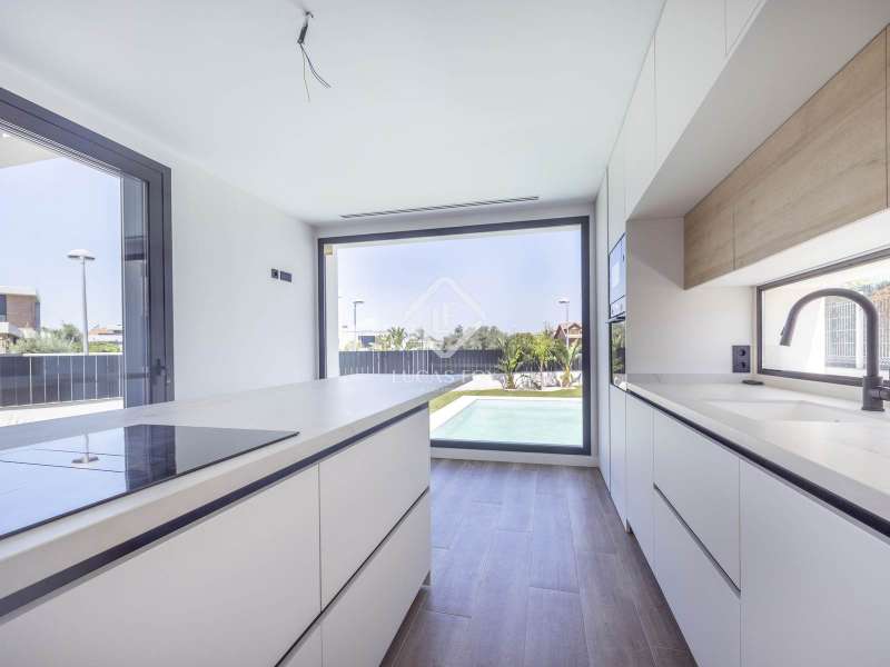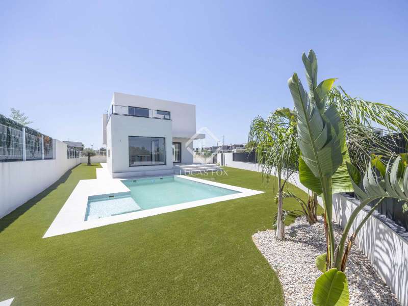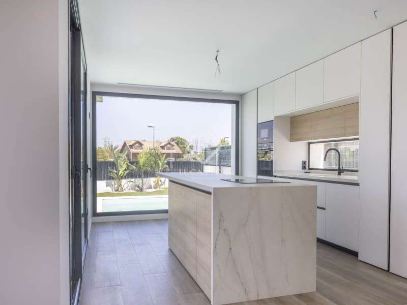 This magnificent house is located in a prime residential area in Bétera, just a few meters from a renowned shopping centre , near the Consum supermarket, and the prestigious Escorpión Golf Club. The property offers a constructed area of 222 m², with thoughtful spatial planning and a two-story layout . On the main floor , we find a spacious living-dining room with an open-plan kitchen, equipped with high-end appliances (dishwasher, oven, and stove) and LED lighting. This floor also features a bedroom, a full bathroom , and a practical utility room. On the upper floor , the main bedroom has a private bathroom, a dressing room with a shoe rack, and high-quality finishes. This floor is completed by two additional bedrooms and a full bathroom , one of which has access to a private terrace and unobstructed views of the Sierra Calderona. The property was built with top-quality materials: exterior carpentry with thermal break, automated blinds, wall-hung toilets, backlit mirrors, and automatic windows in the bathrooms. It is equipped with an aerothermics pump, underfloor heating on both floors, separate ducted air conditioning , dual video intercoms, an alarm, pre-installed water softener, and built-in wardrobes with sensor lighting. The exterior offers a 526 m² corner plot with access for two vehicles, perimeter lighting, pre-installation for a paella pan, and preparation for the installation of an exterior toilet. It also boasts an impressive 7 x 3.5 meter pool with a built-in staircase, an island-style relaxation area, an exterior shower, an Astra purification system, and lighting. Finally, it features magnetic closures, concealed hinges on the interior doors, and an irrigated garden . The development has 24-hour security, providing a safe and exclusive environment for the whole family. Contact us for more information.