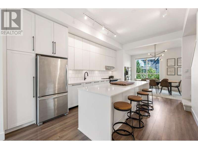 Welcome to this bright & spacious 4 bed, 3 bath townhome built by Mosaic in 2022! Thoughtfully laid out with 3 bedrooms up and 1 down-complete with its own full bath-this home features high ceilings, large windows for great cross-breeze, and loads of natural light. The gourmet kitchen is the heart of the home, with quartz counters, ample storage, and an oversized island perfect for gatherings. Enjoy a fenced front yard opening onto peaceful greenspace-perfect for kids and pets-along with a sunny balcony and single-car garage for added convenience. Located in a vibrant, family-friendly community with incredible amenities: outdoor pool, full gym, and a welcoming clubhouse that brings neighbours together. This is more than a home-it´s a lifestyle! (id:58403)