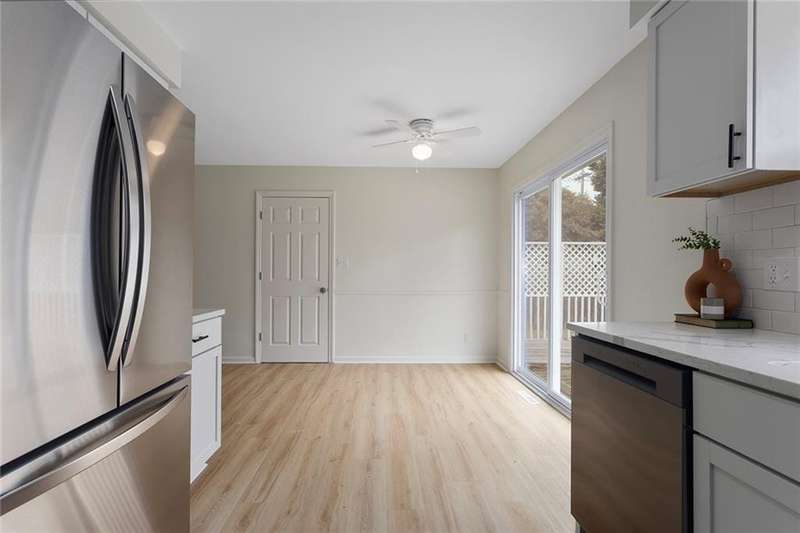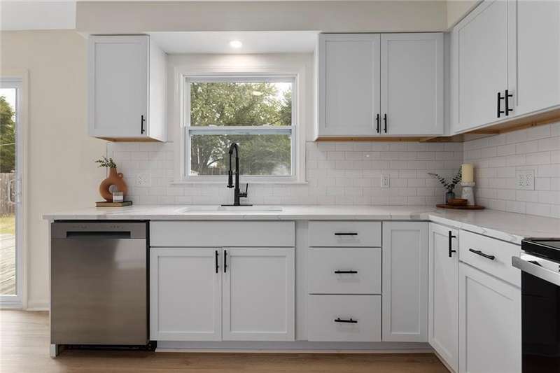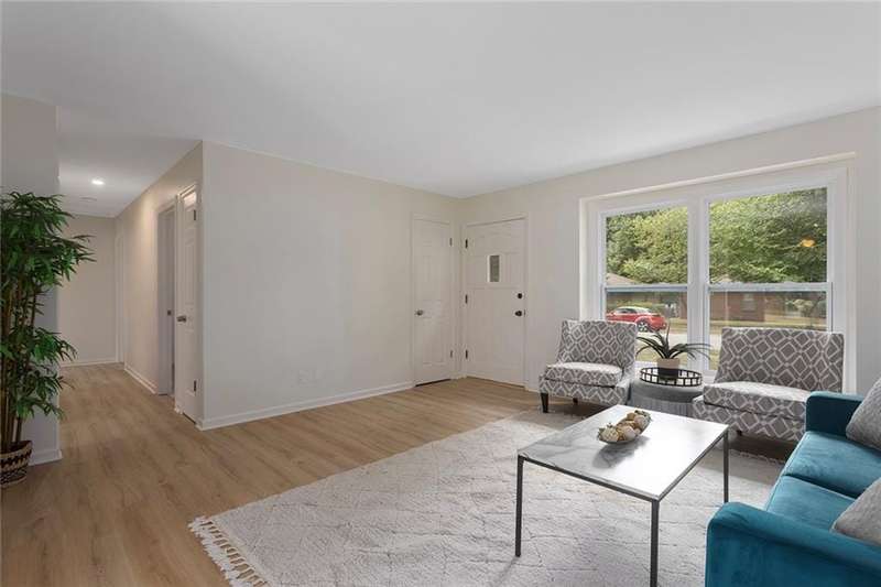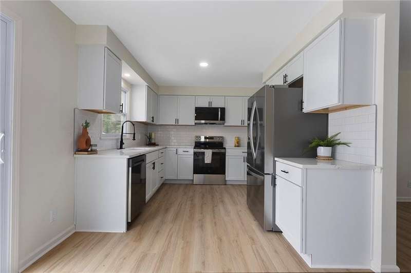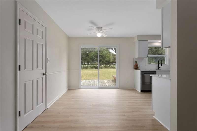 This beautiful, completely renovated 3-bedroom, 1.5-bath home boasts abundant natural light, spacious bedrooms, and stylish LVP flooring throughout the living, dining, and kitchen areas. New cabinets, countertops, paint & flooring throughout. Step outside to enjoy the large deck overlooking a generous yard with a convenient storage shedperfect for both relaxation and entertaining. Situated in a quiet neighborhood while still close to shopping, dining, and highway access, this home offers the ideal combination of comfort and convenience.