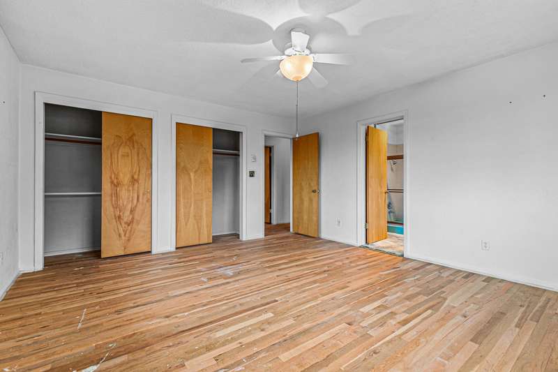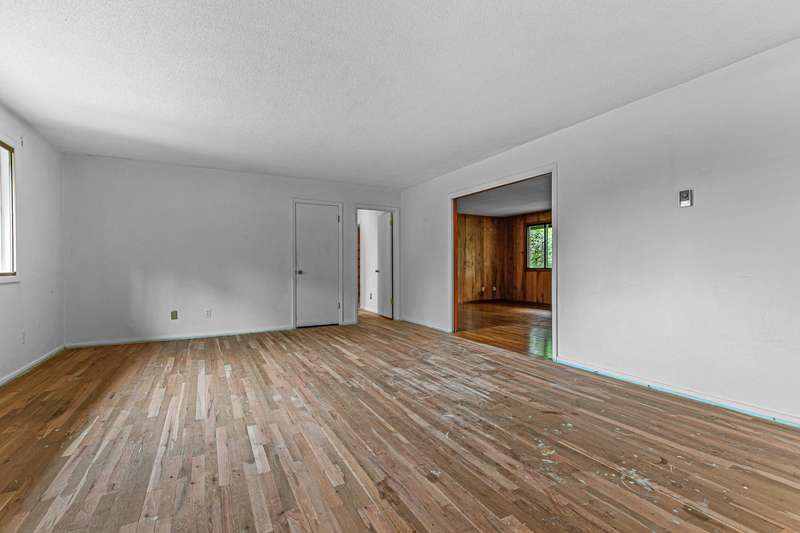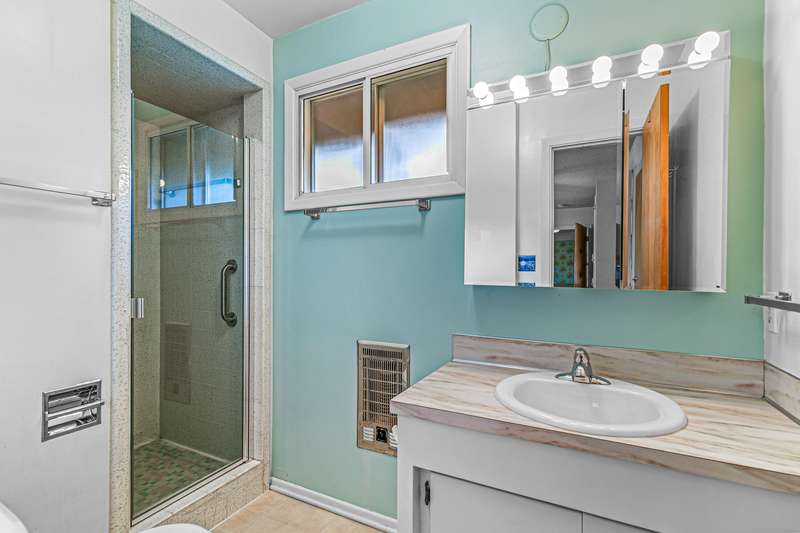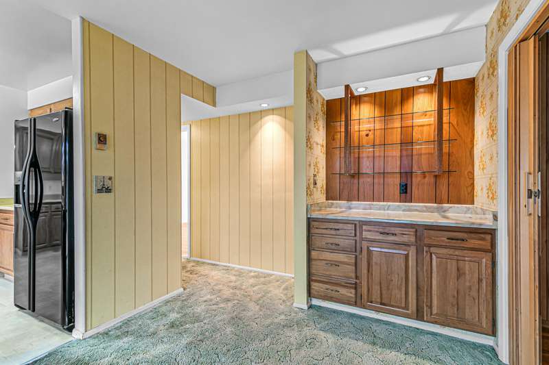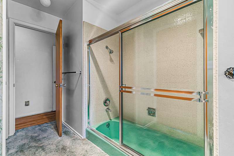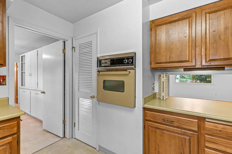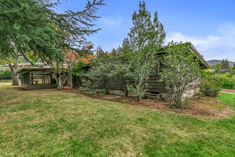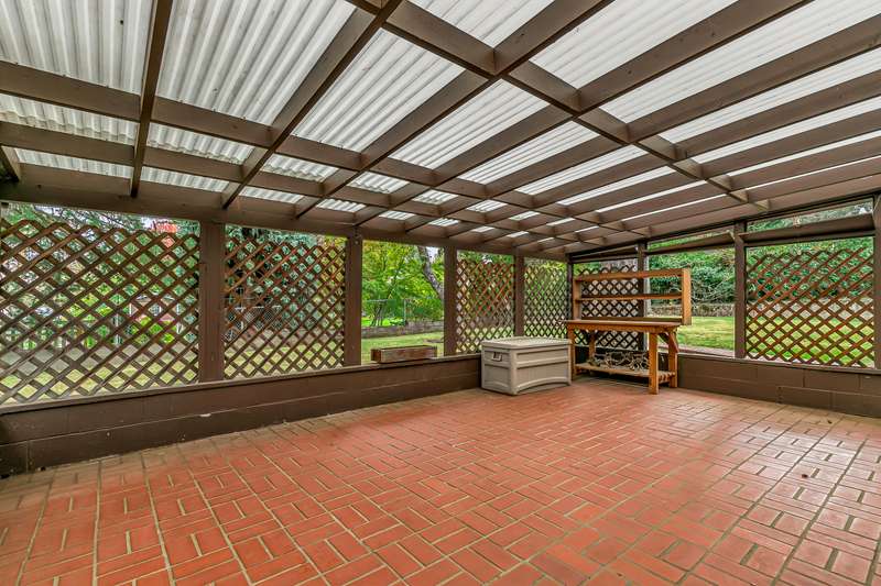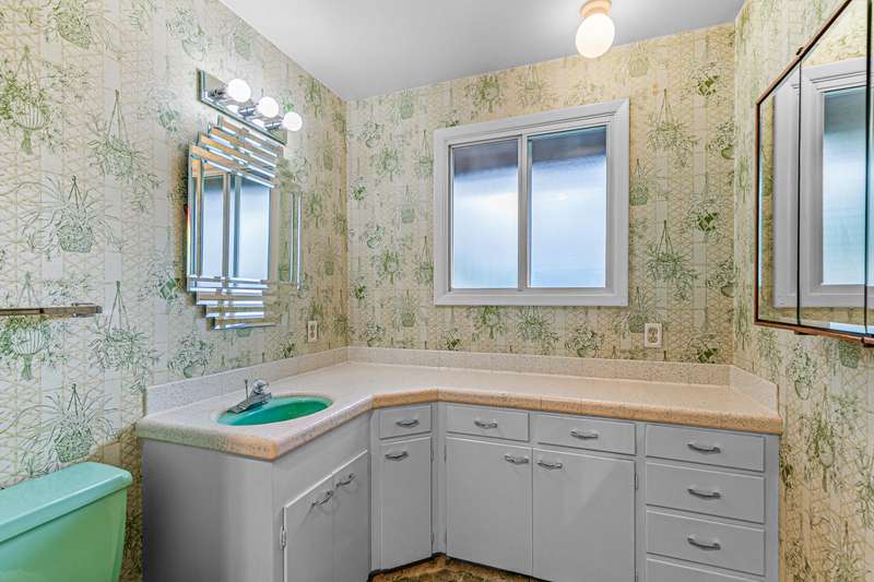 Charming single-level midcentury home on a huge 0.4-acre lot with mature trees located above the boulevard, just nine minutes to Ashland's downtown plaza! Versatile floor plan with original oak hardwood floors, front living room and formal dining room, informal dining area with built-in buffet and sliding glass door to covered brick patio. Kitchen with wood cabinets, stainless double sink, electric range oven with hood, second oven, dishwasher, and refrigerator. Primary bedroom with ceiling fan, dual closets, and ensuite access to full bathroom with tiled vanity, vintage fixtures, and sunken tub shower with tiled surround. Second bedroom or office with built-in shelving, closet, and ceiling fan. Family room or potential third bedroom with wood-paneled walls and wood-burning fireplace with stone surround. Pantry mudroom with built-in cabinets, washer, dryer, exterior door to backyard, full bathroom with shower, and two-car garage with insulated bay doors. Inquire for details!