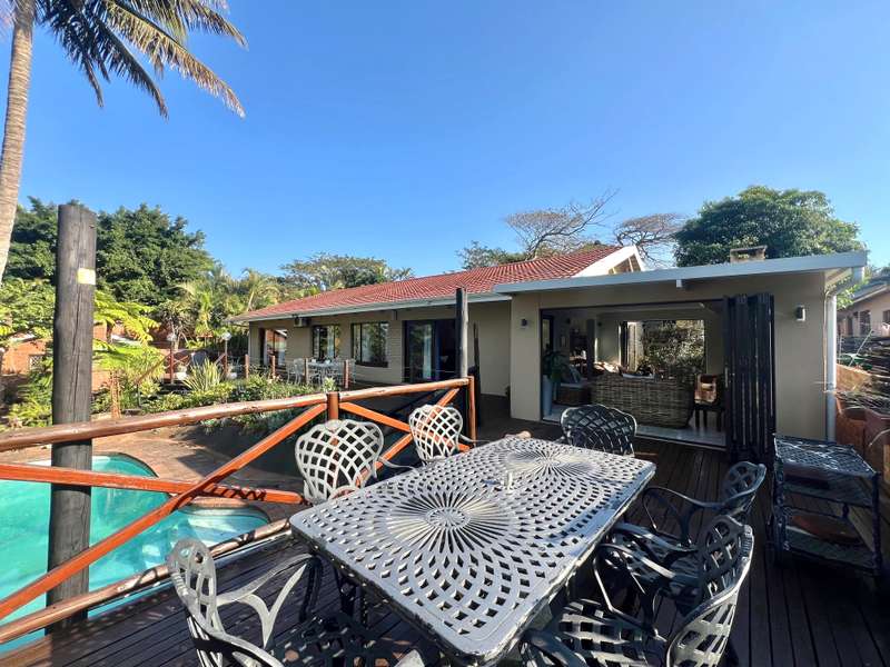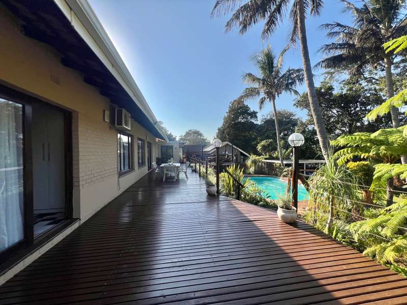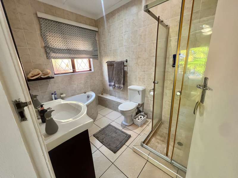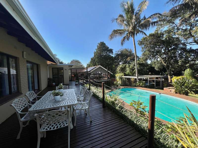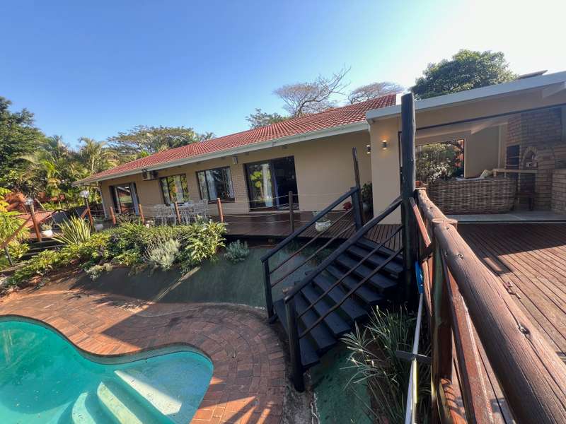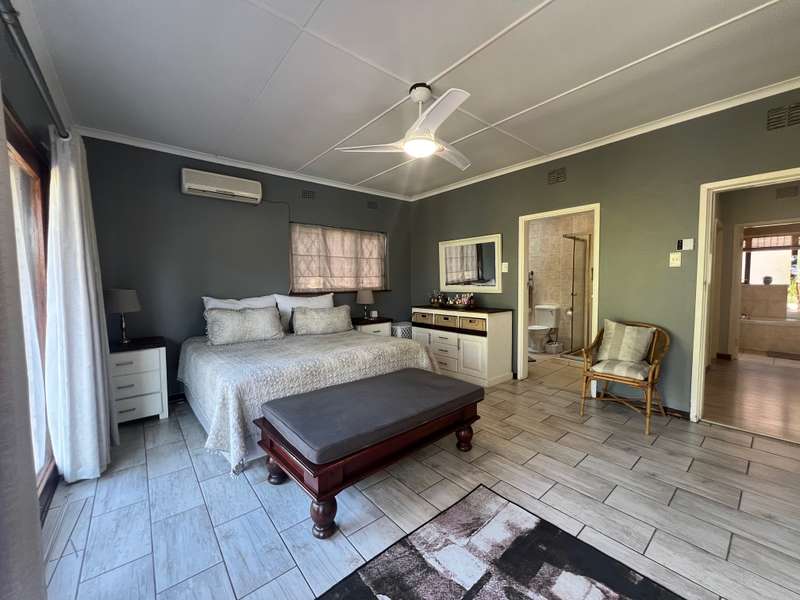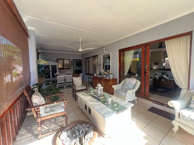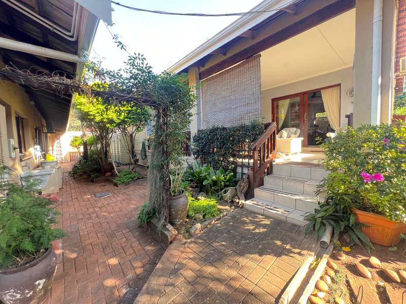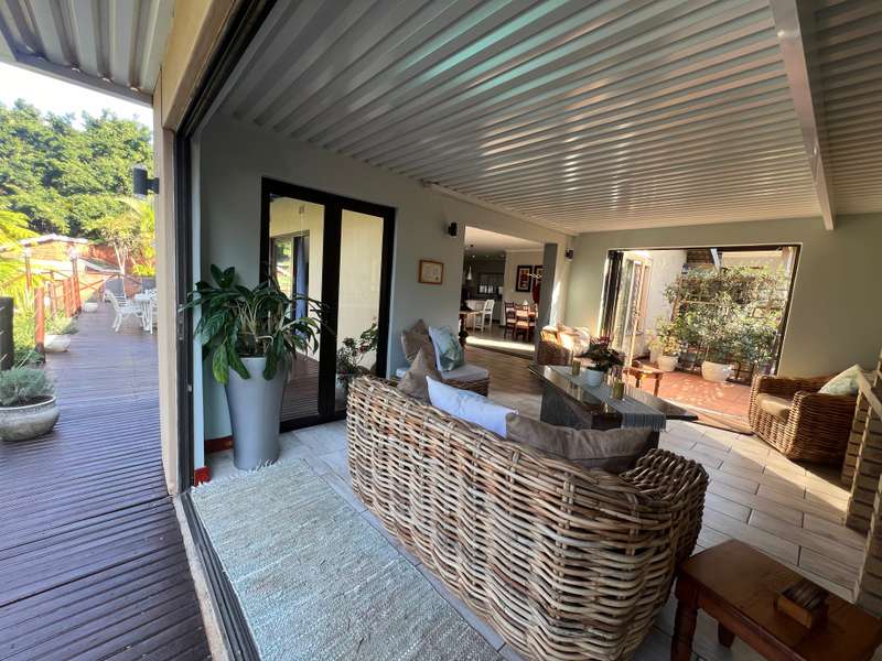This exceptionally well-maintained, single-level property features a 3-bedroom, 2-bathroom main house and a separate 2-bedroom, 2-bathroom Garden Cottage, all situated on an expansive plot. The home boasts a large deck, an enclosed patio with a built-in braai, perfect for entertaining by the swimming pool. The kitchen includes an island, a gas hob, an electric oven, and a scullery/laundry room. The open-plan kitchen seamlessly connects to the hallway leading to three bedrooms and two bathrooms, including a main en-suite. Additionally, there's a study with access to the back garden. The property is equipped with a comprehensive off-the-grid solar system featuring 13 panels, an inverter, a Hubble battery, water tanks, and a 6kVA generator with a change-over switch. 3-phase Electricity installed. Outdoor amenities include a large swimming pool, three automated garages, a boat carport, and two separate automated gates. The property is secured with electric fencing, an alarm system with infrared motion sensors, and five water tanks. The beautifully landscaped garden adds to the property's charm.