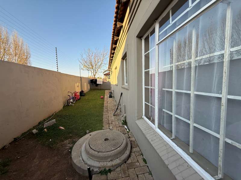 Unit is located at the end of a cul-de-sac, with private garden space. Making it perfect for kids. Large open plan living space meets you as you enter the unit, with the kitchen towards the back. The garage has been turned into the third bedroom, a doorway leads into from the living area. (Should one require a garage a part of living space could easily be blocked off as a bedroom, leaving still ample living and dining space) The covered carport at the front of the old garage, could also be easily be closed up as lockable parking. A unit with ample potential!