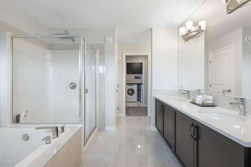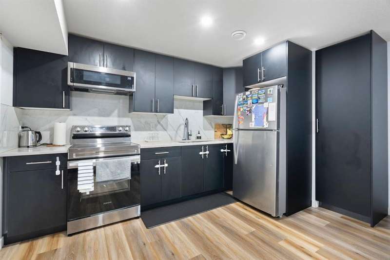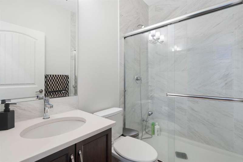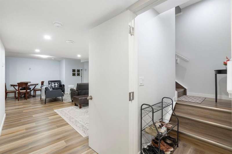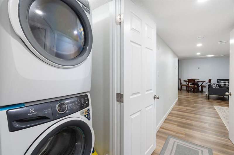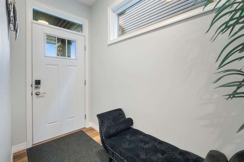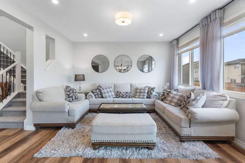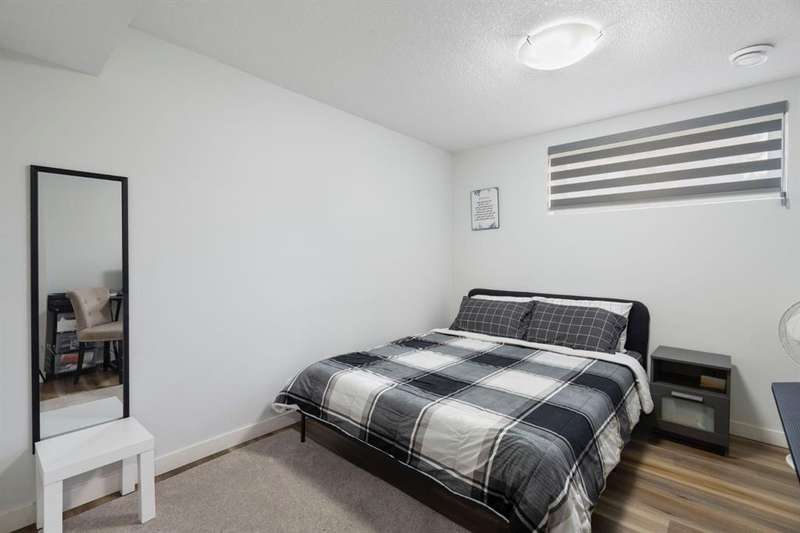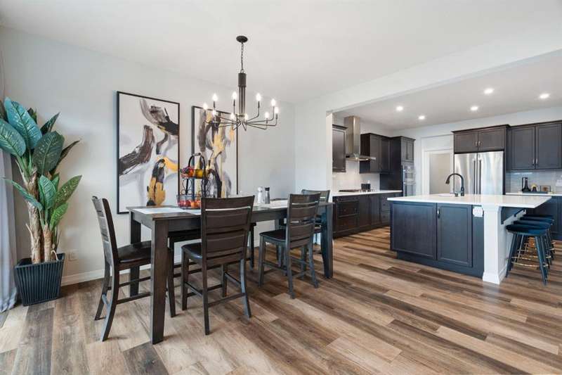 Welcome to this beautifully appointed 2-storey home with a legal basement suite in the vibrant community of Cornerstone perfect for families, multi-generational living, or those looking for an income opportunity. Offering over 3,300 sq ft of living space, this home combines thoughtful design, stylish upgrades, and energy-efficient features for a truly exceptional lifestyle. From the moment you step inside, you’re greeted by a bright, open main level with soaring ceilings and large windows that fill the space with natural light. The executive kitchen is the heart of the home, showcasing a massive upgraded quartz island, premium cabinetry, stainless steel appliances, and a walk-through pantry. Whether you’re hosting family dinners or casual get-togethers, this kitchen is designed for connection. The main floor also features a bedroom with full bath, ideal for guests or extended family, plus easy access to the maintenance-free composite deck perfect for summer BBQs and quiet evenings outdoors. Upstairs, you’ll find three spacious bedrooms, including a serene primary retreat with a walk-in closet and spa-inspired ensuite. A generous den offers the perfect spot for movie nights or playtime, while the laundry room adds convenience to daily life. The legal basement suite is a standout feature, complete with its own private entrance, open kitchen and living area, 2 bedrooms, full bath, and separate laundry, ideal for generating rental income or offering comfortable space for extended family. This home is loaded with builder-installed upgrades, including centralized air conditioning, triple-pane windows with low-e and argon fill, a 220-volt/30-amp electric vehicle charging outlet in the garage, an HRV (heat recovery ventilation) system, and a UV-C ultraviolet air purification system installed in the furnace. Additional features like builder-installed solar panels, a Navien tankless water heater, and a centralized water softener help you save on utilities while enjoying modern comfort. Located in the family-friendly community of Cornerstone, you’re close to parks, pathways, schools, shopping, and have easy access to major routes, making every day effortless and enjoyable. You don’t want to miss your chance to see this one!