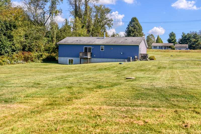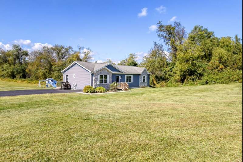 Only 10 years young, this beautiful custom-built rancher offers the perfect blend of modern comfort and peaceful country living — all while being just minutes from local conveniences! Sitting on a private 1.39-acre lot with no restrictions, this home is ready for you to move right in and enjoy. Step inside to discover fresh professional paint and new carpet throughout, a brand-new HVAC (2024), new hot water heater (2025), and new washer & dryer (2024)! The gleaming Luxury Vinyl Plank flooring (2023) adds a touch of elegance, and the freshly blacktopped driveway (2025) welcomes you home in style. The open floor plan features a spacious living room with a cozy electric fireplace, a large and bright kitchen with ample storage, and a convenient laundry area with a pantry located right off the side entrance. The primary bedroom suite is spacious, featuring a large walk-in closet and a generously sized en-suite bath. Two additional bedrooms and a second full bathroom provide ample space for family or guests. Downstairs, you’ll find a full poured-concrete basement — the entire footprint of the home — with a rough-in for a 3-piece bath and an egress window to the backyard, offering endless possibilities for expansion or recreation space. The property also features a low-nitrogen BAT septic system, adding efficiency and peace of mind. Don’t miss this lovingly maintained home in a gorgeous rural setting — offering the best of both worlds: country serenity and modern convenience!
