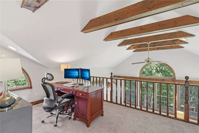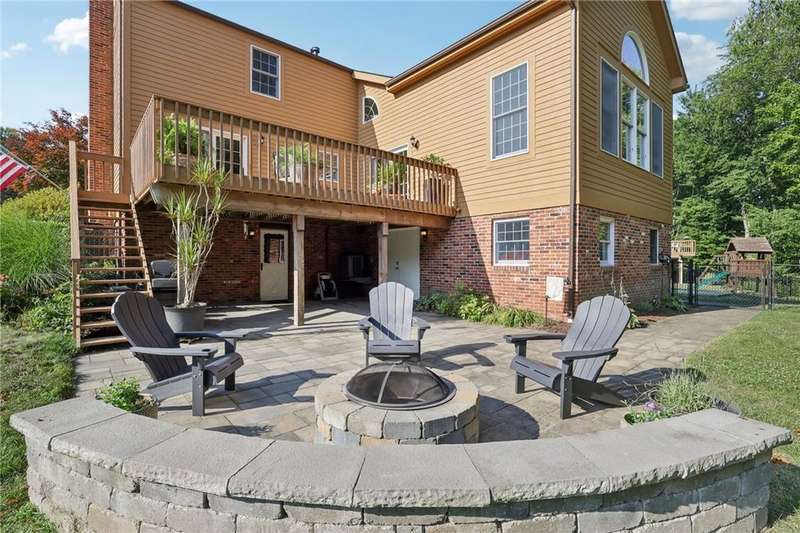 Private 1.01-Acre retreat tucked away on a Quiet Cul-de-Sac.This meticulously maintained 4-bedroom,2.5-bath home offers the perfect blend of elegance & comfort.Inside,rich cherry hw floors & refined judges paneling create a warm, sophisticated welcome.The updated kitchen is a chef's delight w/ stainless steel appliances,granite countertops.The expansive family room features soaring ceilings,abundant natural light.Upstairs,the primary suite boasts a custom walk-in closet & a luxurious ensuite w/ double vanity & oversized tile shower.3 additional bedrooms w/ generous closets, & a full hall bath.Step outside to your private oasis:a stained deck overlooks a spacious fenced yard,while a newly installed stone patio w/ a custom fire pit invites cozy evenings under the stars.An additional room off the patio-offers endless possibilities.Recent updates include a newer roof, windows, and freshly painted cedar siding, along with updated interior lighting, new flooring, and fresh paint throughout.