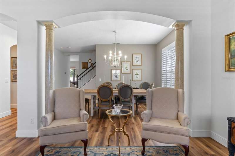 Welcome to 201 Burgess Drive, an elegant colonial-style home in the gated Avery Park community of Winter Springs. This spacious 4-bedroom, 2.5-bath residence offers a warm and inviting atmosphere perfect for families and entertaining alike. Step inside to find beautifully updated interiors featuring plantation shutters, fresh paint, new light fixtures, and brand-new flooring on the entire first floor and stairway. The first-floor primary suite boasts a large bathroom with separate tub and shower, a private water closet, and a generous walk-in closet. The kitchen has been recently upgraded with refinished cabinets, new hardware, a stainless-steel refrigerator, and new pull-out shelving for easy organization and storage. The adjacent eat-in kitchen area opens to a large family room, creating a great flow for gatherings. Upstairs, three roomy bedrooms include one currently used as an office, plus a large second family room ideal for play, work, movies, man caving or hobbies. The upstairs bathroom features dual sinks and a separated water closet for added convenience. Enjoy the screened lanai with covered seating and natural light, perfect for relaxing, gardening or grilling. The three-car garage offers ample storage with added upper shelving, a resealed floor, and a EV charging outlet. Additional features include two air conditioning units for efficient cooling, a 2020 roof, and a super-sized washer/dryer that convey. The fenced yard includes crushed river rock for low maintenance and a pet-friendly space. Avery Park is a friendly, private community with a pool, gazebo, basketball court, and a scenic pond. Residents enjoy morning and evening walks, neighborhood events, excellent Seminole County schools within minutes, and proximity to Winter Springs Town Center with shopping, dining, and conveniences. Commuters will appreciate easy access to the 417 expressway, Orlando International Airport,and Sanford Airport. Nearby parks, trails, and country clubs add to the appeal. At this price point, 201 Burgess Drive offers a great value. The owners are flexible on closing. Don't miss your chance to call this beautiful, move-in-ready house your home!