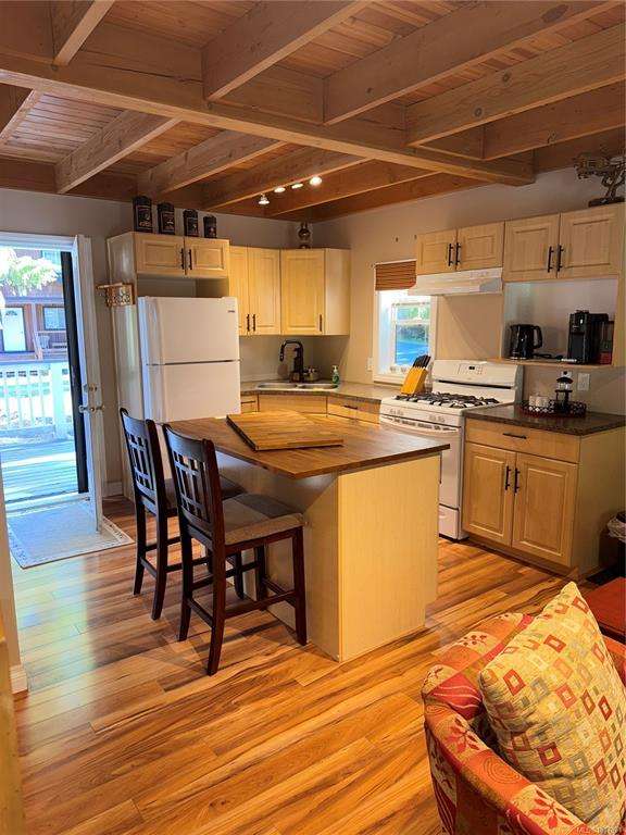 Heaven on Earth—Cabin 40, Clearwater Resort, Shawnigan Lake is a fully furnished 822 sq ft recreational property with over 400 sq ft deck and patio, nestled in a gated riverside community near the historic Kinsol Trestle. This charming cabin features an open-concept layout with a well-equipped kitchen, propane cooktop, large island, and cozy propane fireplace. Natural light fills the main-level living and dining area, while the versatile upper loft offers space for a primary bedroom plus an additional sleeping or sitting area. Enjoy morning coffee on the front veranda, relax on the resurfaced back deck, or explore the community’s private swimming hole and playground. Serviced by electricity, propane, shared well, septic system, and laundry facility. High-speed internet available; limited cellular coverage. Just minutes from Shawnigan Lake, Cowichan Valley wineries, and trails. Ownership allows up to 26 weeks of use per year. Cabin insurance required. Traditional financing not available