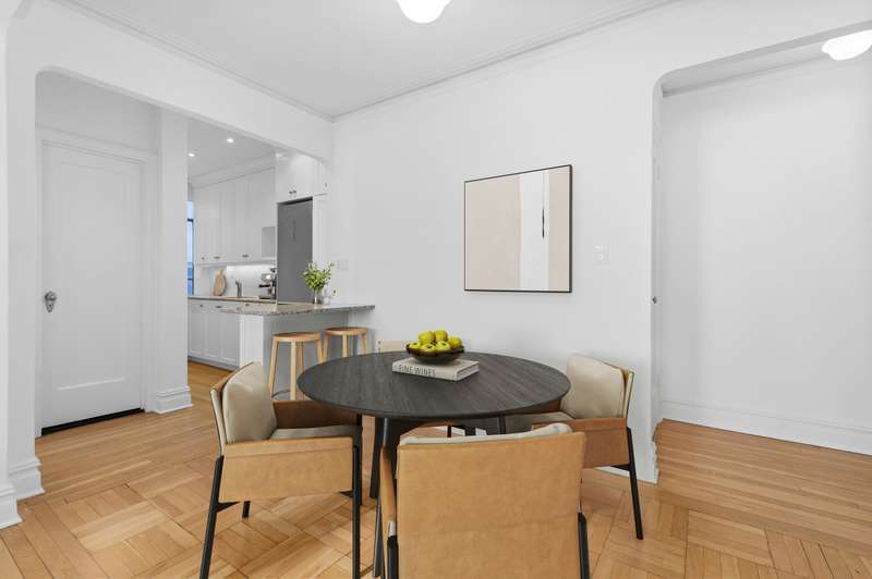 Enter through the building's classic Art Deco lobby and take the elevator up to the fifth floor, where a gracious foyer with two oversized closets welcomes you home. Step on to an elevated landing before descending into your dramatic sunken living room - a signature 1940s architectural detail that immediately sets this residence apart.