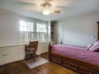 Charming and well-maintained home in HPISD! This lovely 2-story features 4 beds and 2.5 baths, hardwood flooring throughout all living areas and bedrooms, and plenty of natural light. Downstairs you will find the formal living and dining, the updated kitchen that opens into the breakfast and family room with wood-burning fireplace. There is also a first floor bedroom with built ins and adjacent powder bath for guests. The large primary bedroom is located upstairs with updated ensuite bath and plenty of closet space. Two additional good sized bedrooms and full bath complete the second floor. The private backyard is perfect for entertaining with tons of space, large trees, and covered patio area. Not included in the MLS square footage is an additional flex space where the utility-mud area is located and is perfect for a home office. This home has all of the wonderful character and charm one would expect for the neighborhood. Availability with about 2 weeks notice.